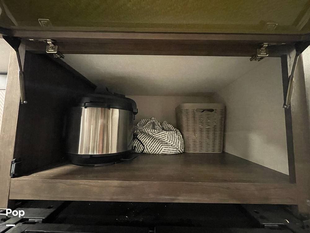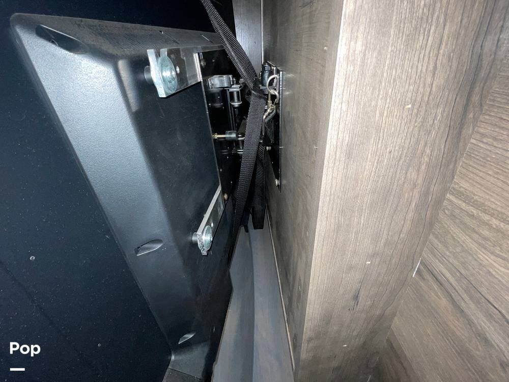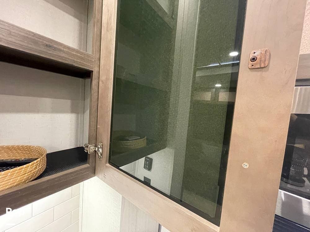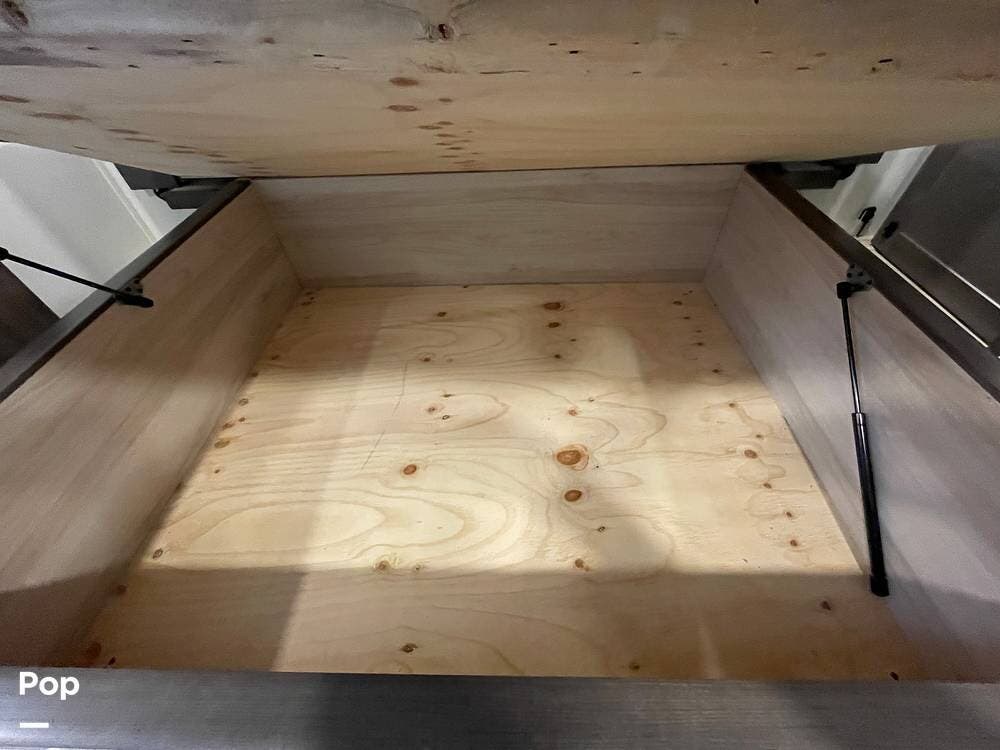 Inside the garage, you'll find storage cabinets and a center-mounted TV that can be easily viewed from the Roll-Over sofa.