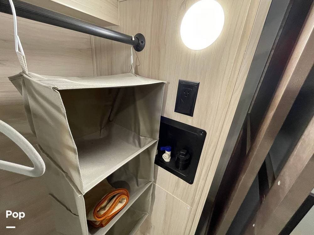 Running alongside the front of the Valor is a large hanging closet that is prepped for a washer/dryer.