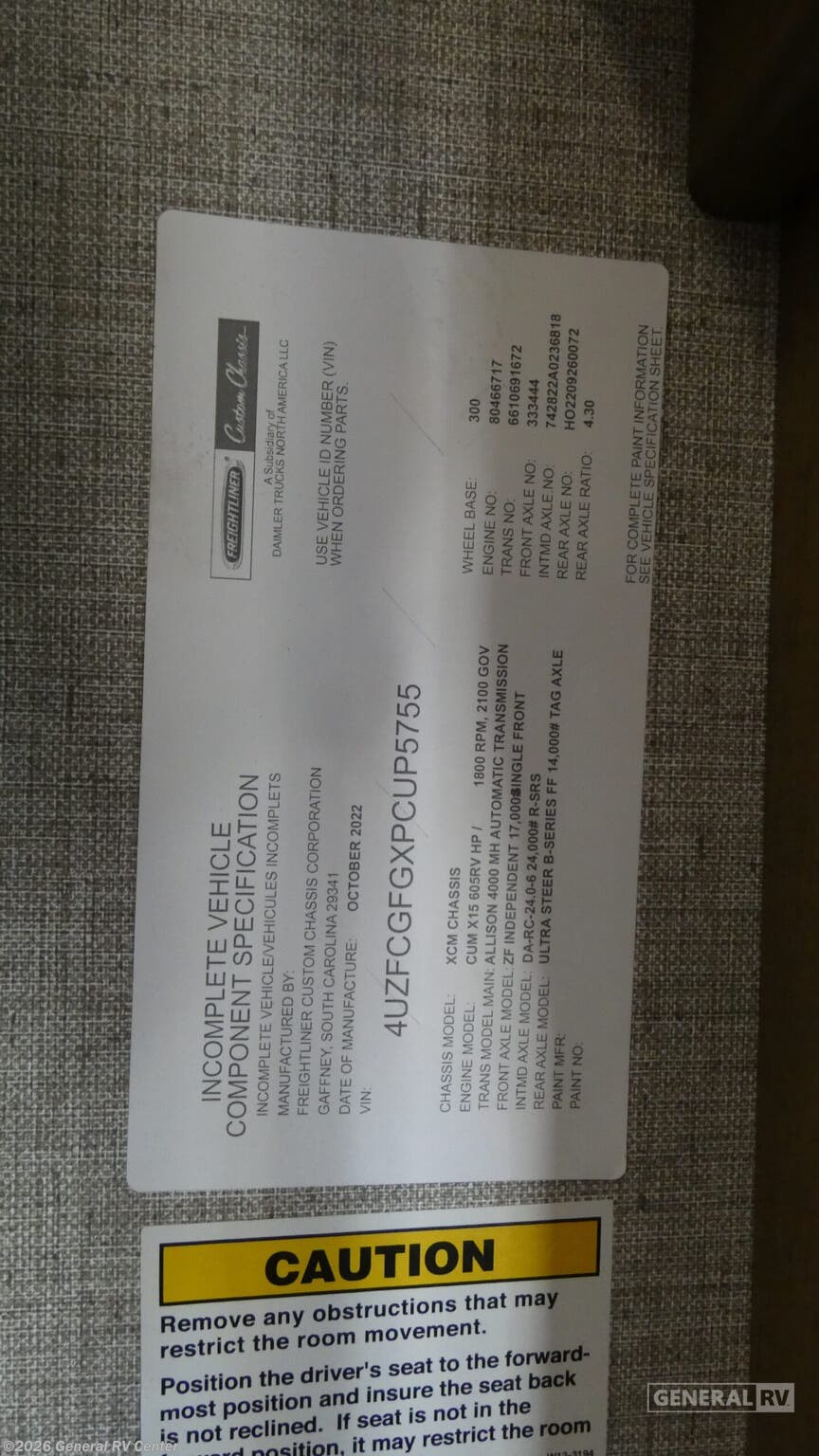 - VIN4UZFCGFGXPCUP5755