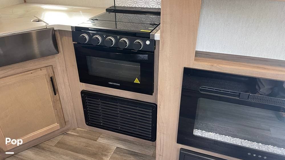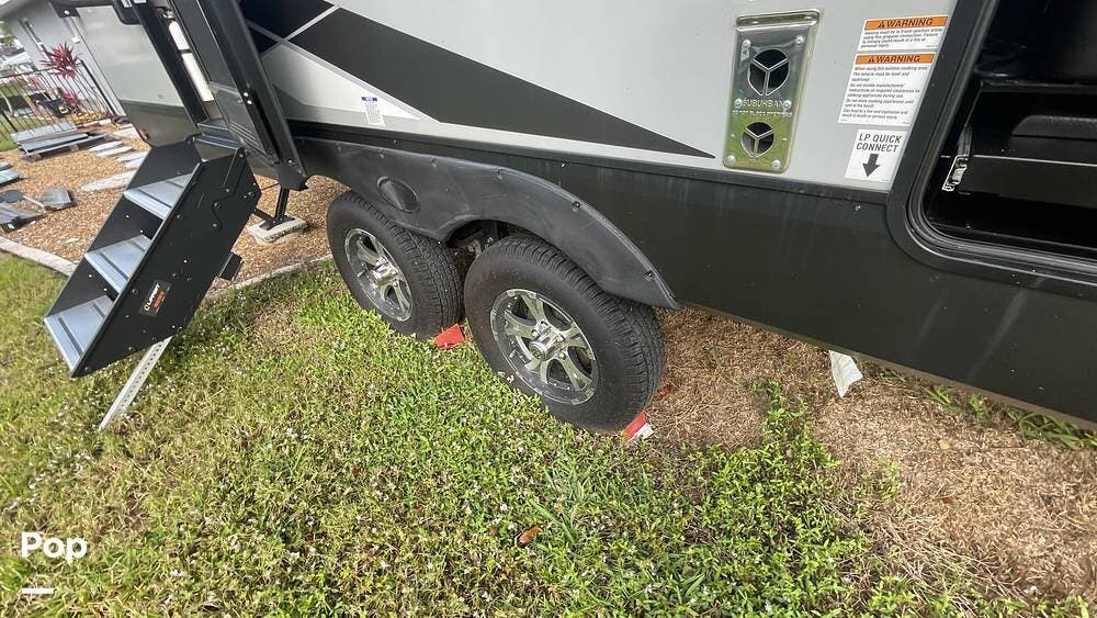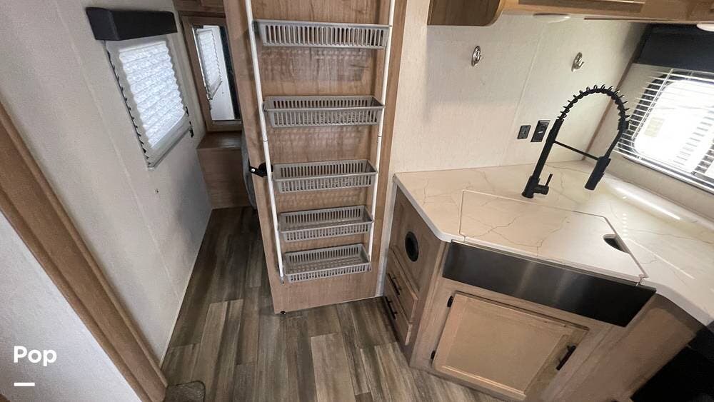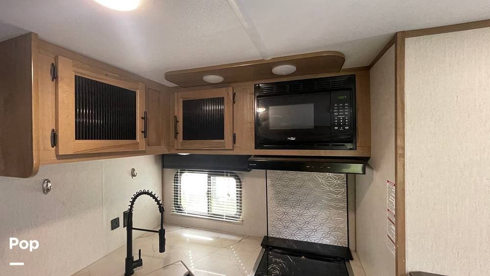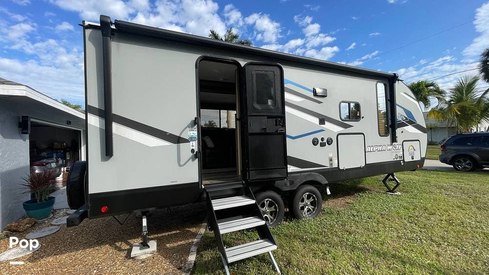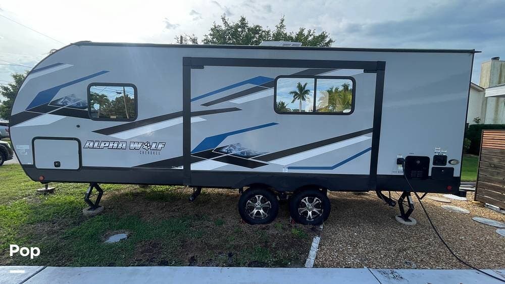This SINGLE OWNER 2023 Alpha Wolf 22SW-L, stationed in the heart of Fort Myers, Florida, represents the epitome of modern camping comfort and convenience.