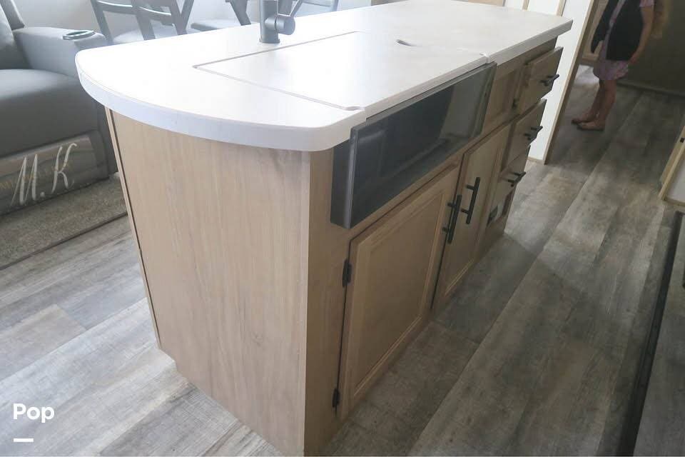 The 2023 Arctic Wolf 3810SUITE is a well-maintained RV with many upgrades and accessories. Its Arctic package makes it suitable for comfortable all-season camping and living.