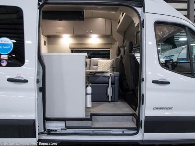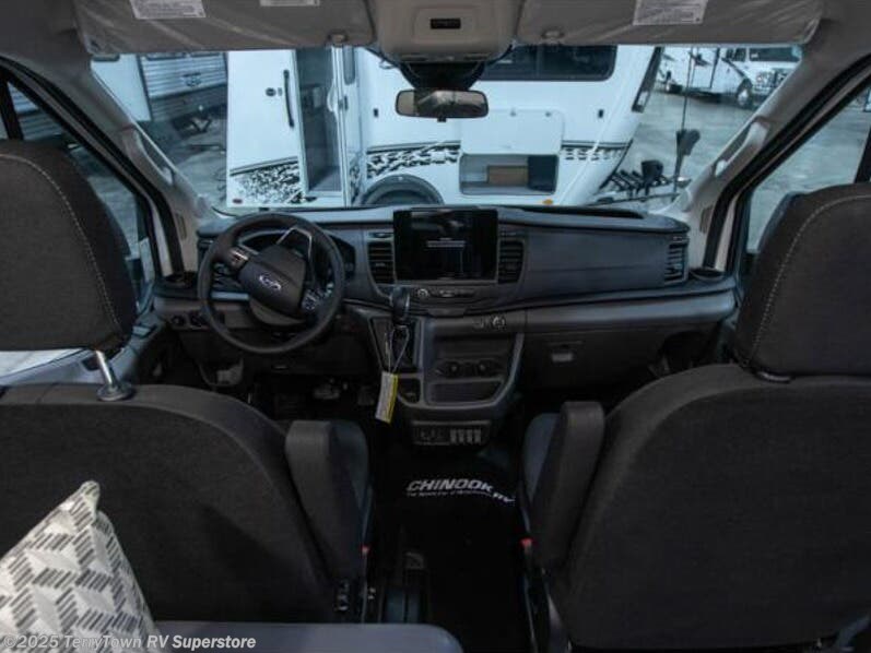 Luxury and functionality come standard in the Bayside Class B gas motorhomes by Chinook. The Ford Transit 3.5L Eco-Boost V6 engine can power your trips across the country or to your local state park. There is ultra-soft leather seating that is not only comfortable, but easy to clean as well. Some of the interior features you are sure to love are the Infinity woven vinyl flooring, MCD day/night roller shades, and LED dimmable ceiling and accent night lights. There is also high quality CNC cut one-piece cabinetry, and a cab shade system to provide exceptional privacy. The Bayside also includes two 6V group 27 AGM house batteries in the under-floor storage, a 2,000 watt inverter with a charger, and a 13,500 BTU A/C system to keep you cool and comfortable. Go off the beaten path with the standard AWD when the adventure calls for it!