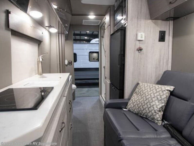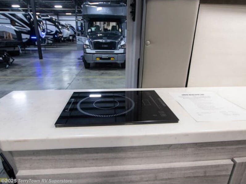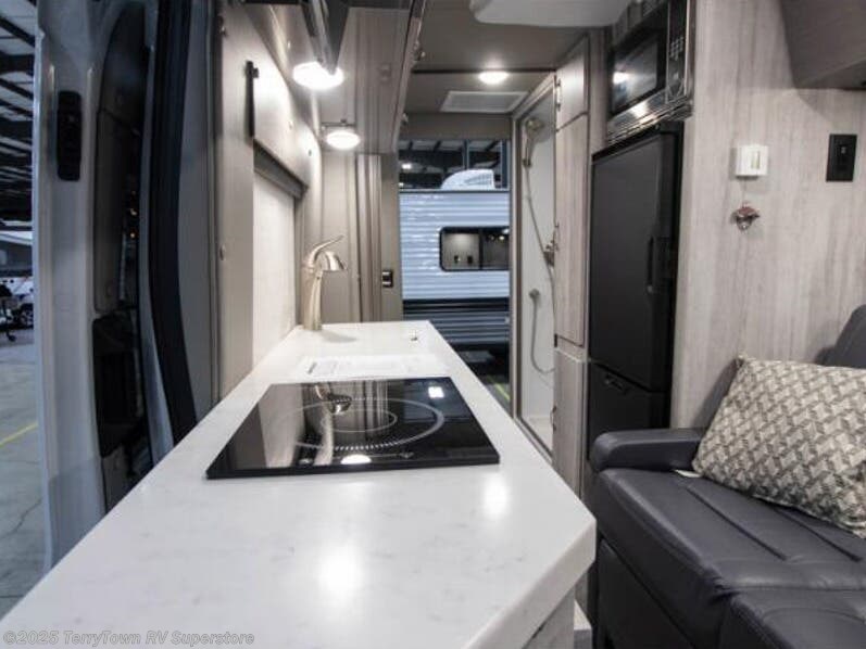 Enjoy this couple's coach for endless adventures! You will have a sleeper sofa to relax on during the day and sleep on at night. In the morning you can prepare a hearty breakfast on the induction cooktop, and you can grab the orange juice from the Norcold 6.2 12V/120V refrigerator with a pullout freezer drawer. The full bath is sure to come in handy, and you'll find a wardrobe and a set a drawers to store your clothes for the week.