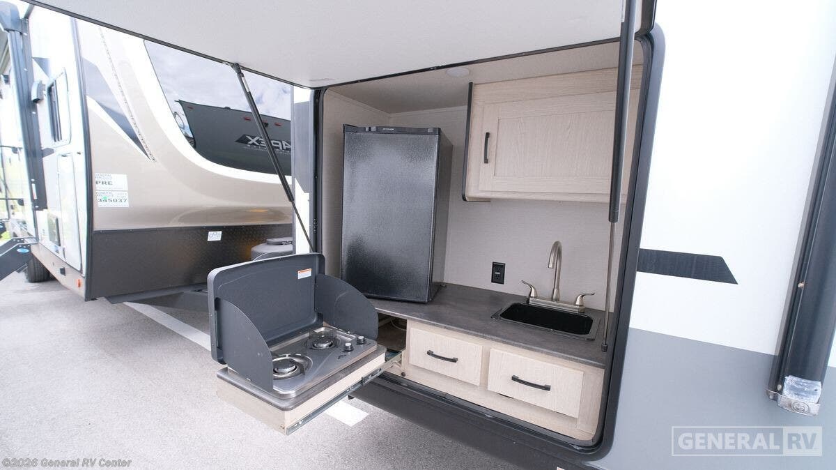 **Coachmen Apex Ultra-Lite travel trailer 251RBK highlights:** * 16' Power Awning with LED Lights * Outside Kitchen * Stainless Steel Sink * Queen Bed * Pass-Through Storage Escape the city life for relaxing weekend in this spacious travel trailer. A large slide out provides plenty of space to relax on the sofa or dine at the booth dinette. There is an entertainment center here with a 32" LED TV if you love to watch movies at night, and the full rear bath will allow you to stay clean throughout your trip. The chef can choose to cook indoors on the three burner cooktop, or head outdoors to cook on the outside kitchen! And when it's time to turn in for the night you'll have your own private bedroom up front with a queen bed and dual wardrobes, and any guests you have can sleep on the sofa and booth dinette! Lightweight living and camping is found with the Apex Ultra-Lite travel trailers by Coachmen. These eco-friendly units are made to last thanks to the Azdel composite sidewalls, the laminated aluminum floor, and the vacuum-bonded laminated crowned roof. Lippert axles and nitrogen filled radial tires make towing easier than ever, plus there is a friction hinge entrance door, a 100-watt solar panel with a 10 Amp control charger, and slam latch baggage door catches for easy unloading. Some of the interior comforts you'll fall in love with are the one-piece seamless edge countertops, the hard valances with night shades throughout, the matte black hardware, and the residential comforter. The Apex Ultra-Lite trailers also include USB ports, a digital TV antenna with cable hook-ups and Wi-Fi capability, and an AM/FM stereo with Bluetooth to ensure you'll never be bored on rainy camp days!