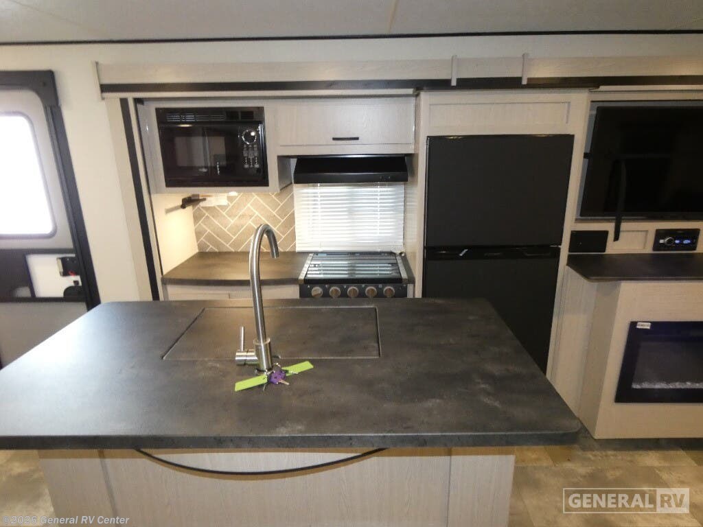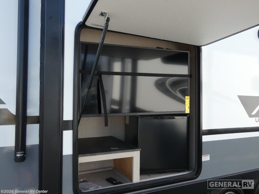 The 2023 Coachmen Apex Ultra-Lite 293RLDS is a marvel of modern RV design, offering a spacious and luxurious retreat on wheels. At 34 feet in length, this travel trailer is designed for comfort and convenience, making it perfect for families or groups of up to six. The centerpiece of this delightful model is its rear living area, where you can unwind on plush theater seating and enjoy the warmth of a cozy fireplace. The dinette offers a perfect spot for meals or game nights, and it easily converts into an additional sleeping area. The heart of this RV is its well-equipped center kitchen, featuring a three-burner cooktop and a mid-size refrigerator to store all your culinary essentials. The layout ensures that everything you need is within arm's reach, making meal preparation a breeze. The front bedroom, with its inviting queen bed, promises restful nights and ample storage with overhead cabinets and wardrobe spaces. The bathroom, conveniently located in the center, includes a shower with a plastic/glass enclosure, providing all the comforts of home. Outside, the 18-foot powered retractable awning creates a perfect shaded area for relaxation or entertaining. Plus, the camp kitchen and outside TV setup are ready to elevate your outdoor living experience. With its thoughtful design and array of features, the Apex Ultra-Lite 293RLDS is your ticket to unforgettable adventures. For more information, visit your nearest General RV dealership.