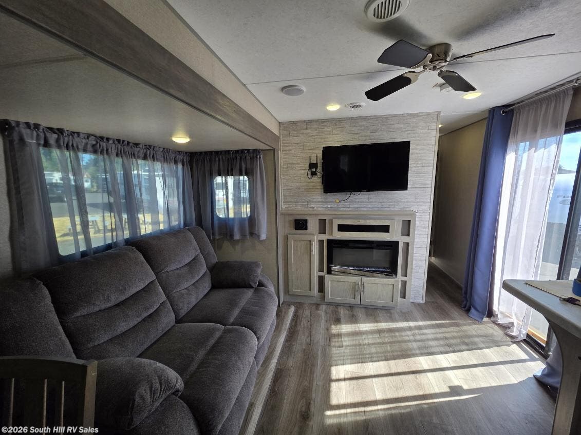 Booth Dinette, Bunk Beds, Ceiling Fan, Fireplace, Medicine Cabinet, Queen Bed, Roof Vents, Shower, Toilet