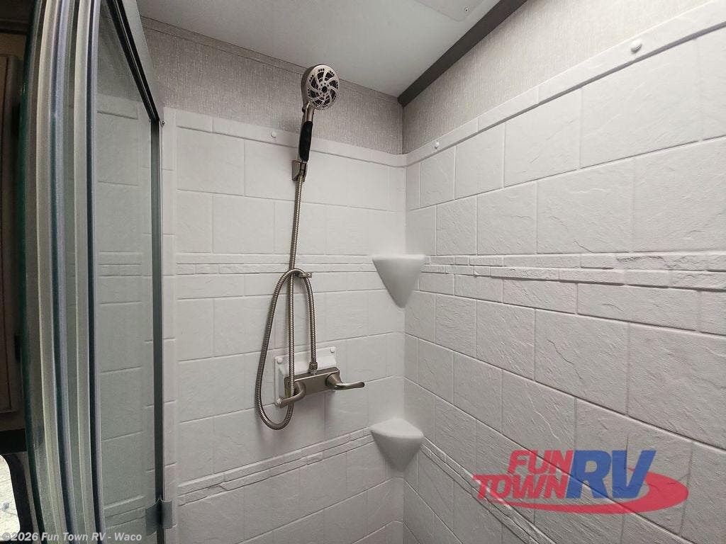 Each Chaparral mid-profile fifth wheel by Coachmen is designed with residential features, loads of storage space, and roomy bedroom suites to make you feel right at home. The durable construction means you can enjoy your RV for years to come. There's dual-sided Azdel composite sidewall panels, Weather Shield+ technology, and Tri-Tex powder coated frame technology that will allow you to camp year around. Each model includes a Winegard Air 360 HDTV/radio dome antenna and an AM/FM/CD/DVD player with Bluetooth to keep your entertained, plus roller night shades and a modern electric fireplace to make your space cozy. There is also a large transom window in the kitchen, a modern high-rise faucet, LED motion sensor lights in the bathroom, plus a full-size shower with glass doors and a seat. Now that's what I call luxury! Choose a Chaparral fifth wheel today!