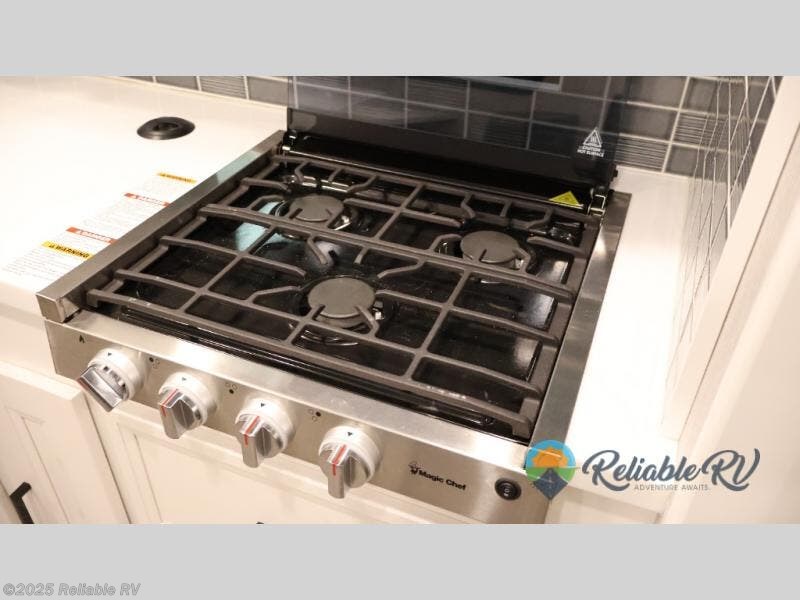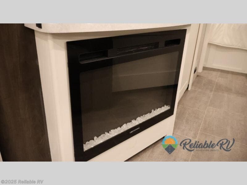 Experience a comfortable trip every time in this motorhome! It features a rear private bedroom with a 70" x 74" king bed including a storage system, a CPAP station above it, and opposite an LED TV above the dresser. Freshen up each morning in a full bathroom with a radius shower, and you can keep your clothes clean throughout your entire trip if you choose to add the optional stackable washer and dryer in the space opposite that has been prepped for it. The chef will have an easy time preparing their best meals indoors with a three burner cooktop, but can also enjoy cooking at the outside kitchen as well. The 42" x 76" booth dinette offers a comfortable place to enjoy your meals, and the 78" sofa with bed is conveniently across rom the LED TV and fireplace for a cozy evening indoors. Plus, you even have an exterior LED TV to watch the big game outdoors!