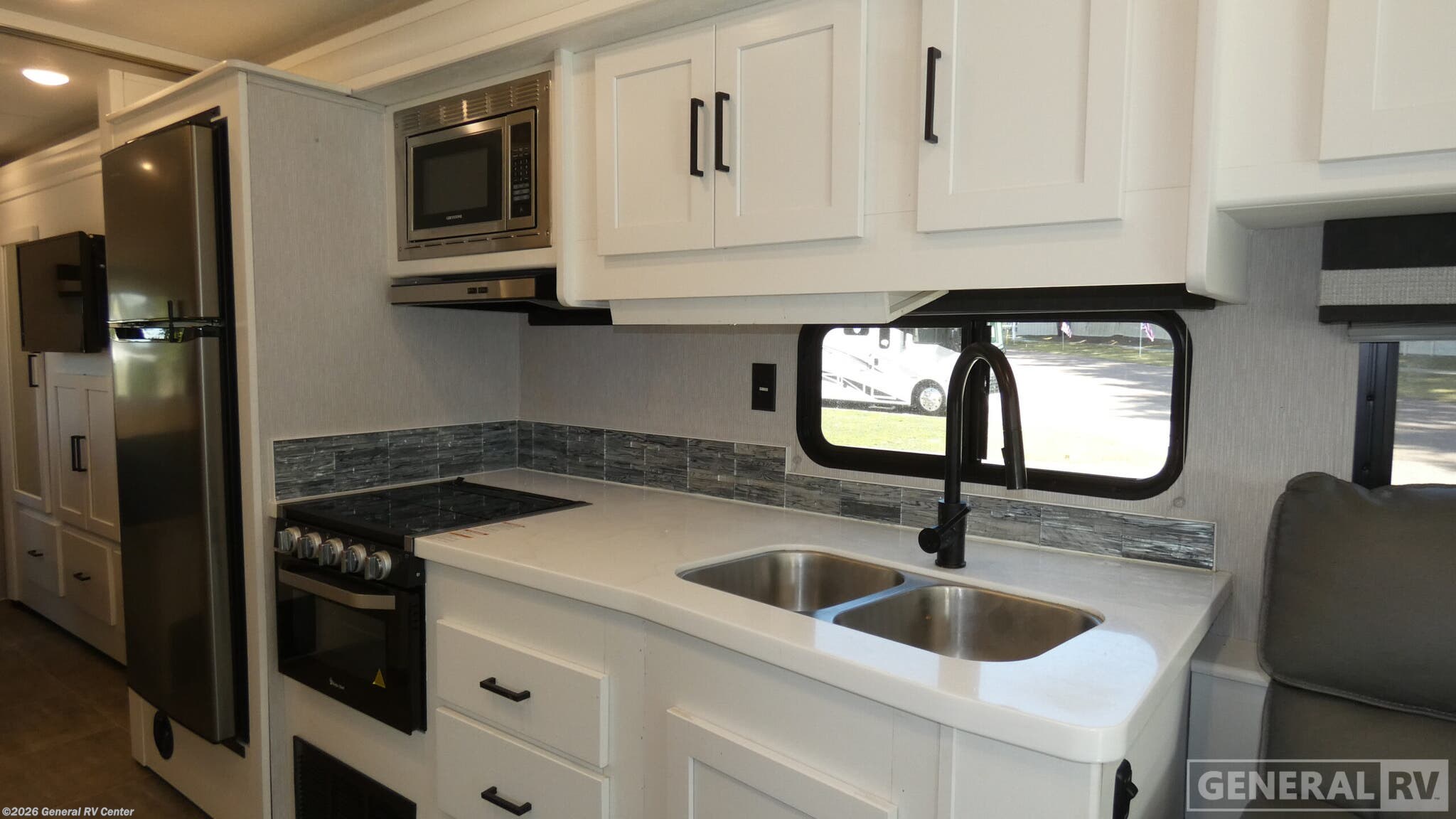 ## Coachmen Encore SE Class A gas motorhome 29SS highlights - Bunk Over Cab - Rear Private Bedroom - 63" Sofa - Exterior Kitchen - Exterior LED TV You will be impressed with all that this motorhome has to offer! Starting with the exterior kitchen with a double sink to make for easy clean up, and the exterior LED TV so you can watch your favorite show as you cook. The rear private bedroom will have you feeling right at home providing a60" x 74" queen bed that has a CPAP station above it, and opposite the bed wardrobes on either side of the LED TV and storage space. There is a broom closet for your convenience just outside the full bathroom which features a 38" x 24" shower with skylight for more head room and natural lighting. The fully equipped kitchen has everything you need to prepare your meals including a stainless steel microwave oven, and you can enjoy dining at the 30" x 70" booth dinette. Relax and enjoy a great book while sitting on the 63" sofa with storage below for extra games or a cozy blanket! With an Encore SE Class A gas motorhome by Coachmen you will enjoy all of your travels. The high gloss gelcoat sidewalls include Azdel superlite composite for maximum durability. Outside, you will find exterior storage for all of your gear, a power patio awning, slide-out room awning, a 20 gallon LP tank, and fully automatic leveling jacks to name a few conveniences. Once you head inside, you will feel right at home with solid surface kitchen countertops, pleated privacy shades, flat panel hardwood cabinet doors throughout, and a porcelain foot-flush toilet. These coaches also include an outside entertainment center with a TV, an LED TV inside, a King Jack TV/radio antenna, and they are pre-wired for a satellite dish so you will still be able to watch all of your favorite movies and games when you want!