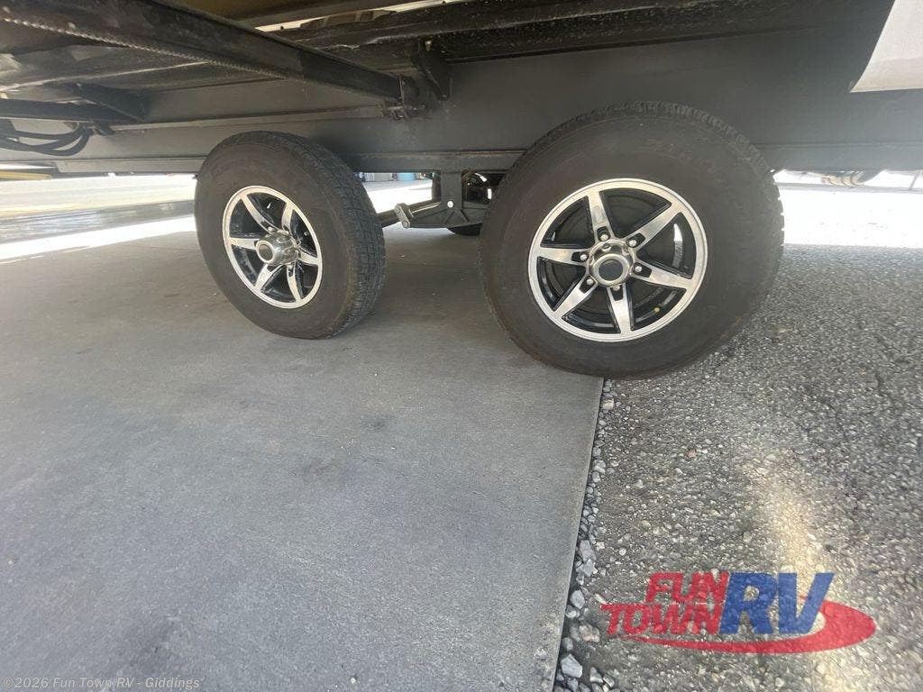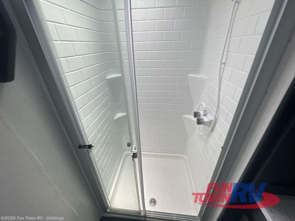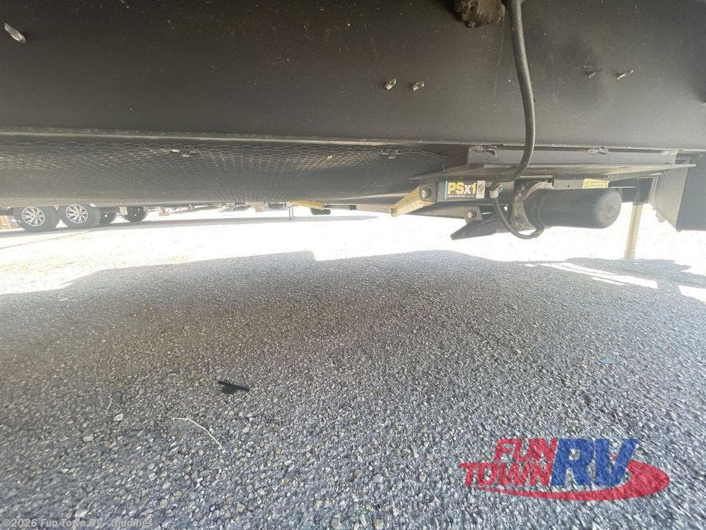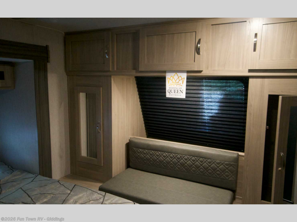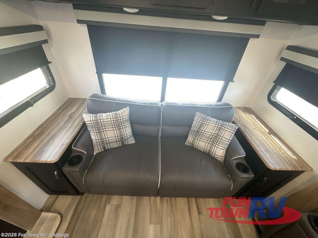 This spacious trailer offers dual opposing slides in the main living and kitchen area and a queen bed slide in the bedroom giving you lots of floor space in both areas! The kitchen offers full amenities including a large pantry, extra counter space, a center island, and a booth dinette. And the cook will be able to enjoy the LED TV and fireplace while making meals. Everyone can relax on the theater seats and the hide-a-bed sofa with end tables when visiting, and the furniture can double as sleeping space if needed. You will have your own bedroom to unwind with plenty of storage in the dressers and wardrobes. And the full bathroom offers a shower, linen storage and laundry bag, plus extra counter space for your toiletries.