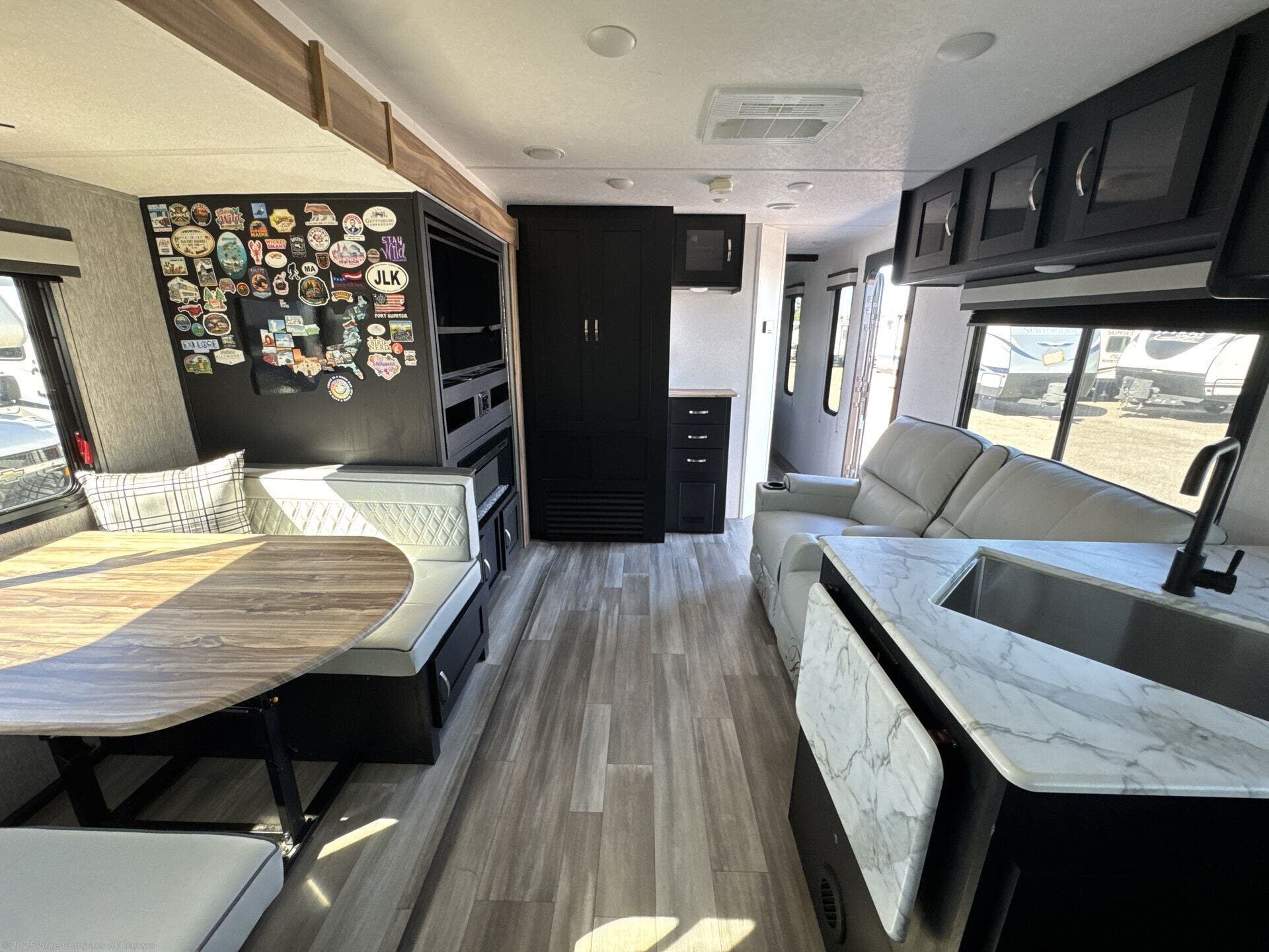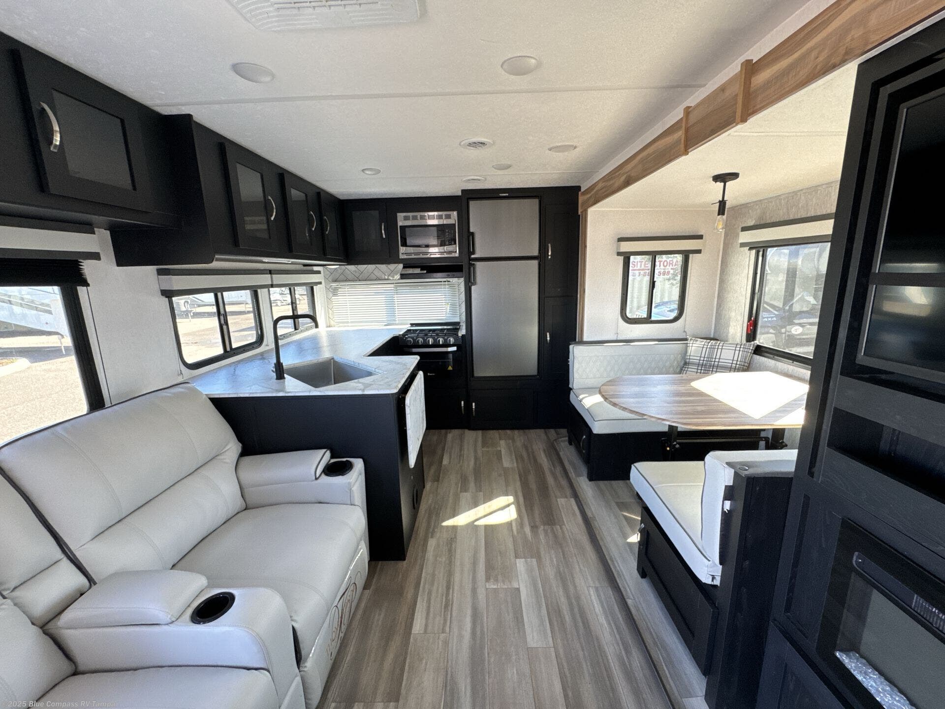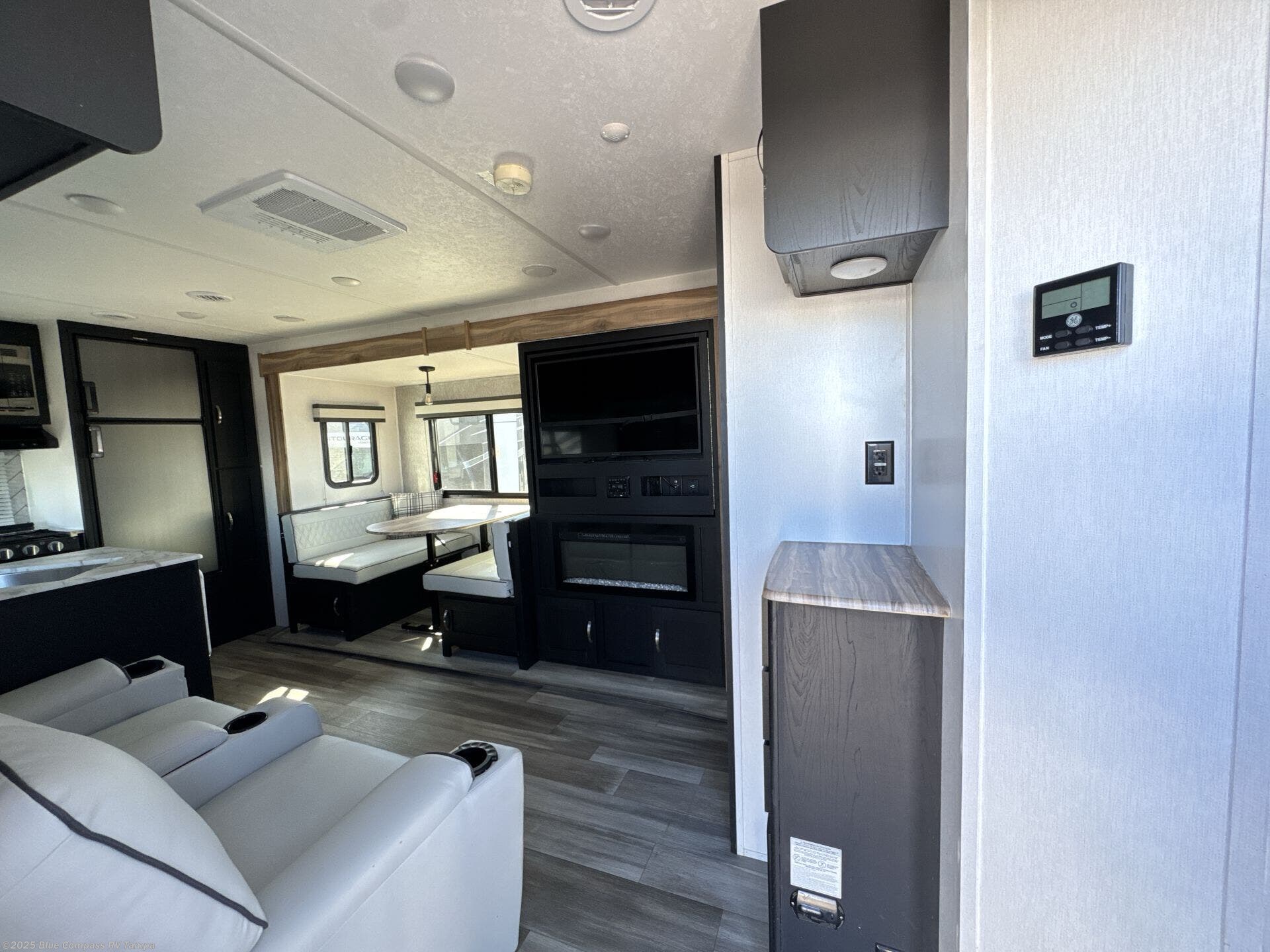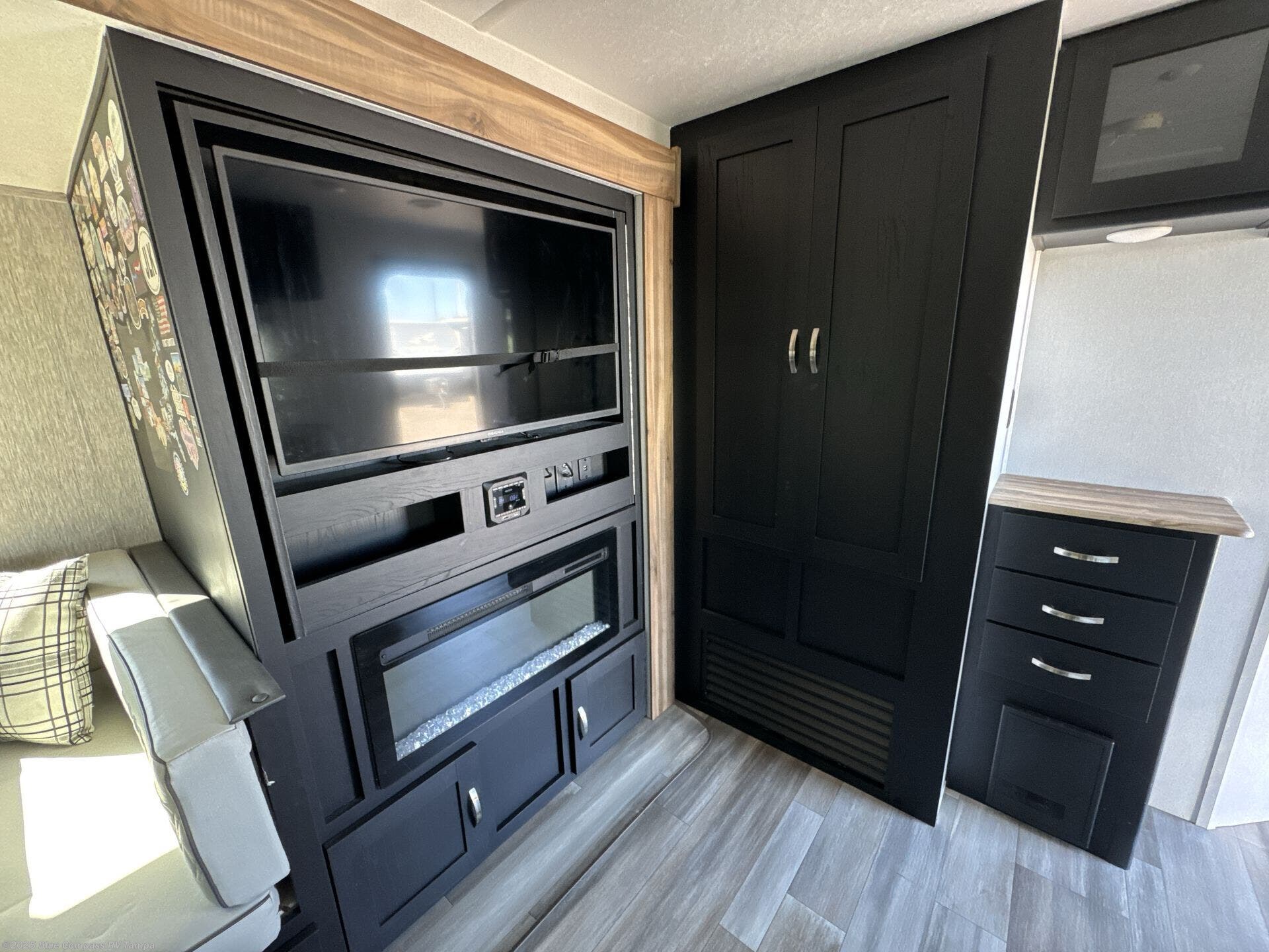 Are you looking for a travel trailer that will feel more like home? Look no further than this model that features a private bedroom up front, a full bath, plus a spacious rear kitchen. You will love to relax on the theatre sofa/hide-a-bed sofa across from the LED TV and fireplace, and there is a booth dinette for dining. If the weather is nice you may just want to sit outdoors under the 20' power awning with LED lights. The chef of your group can prepare a meal on the pull-out camp kitchen, and the kids can grab their scooters from the pass-through storage.