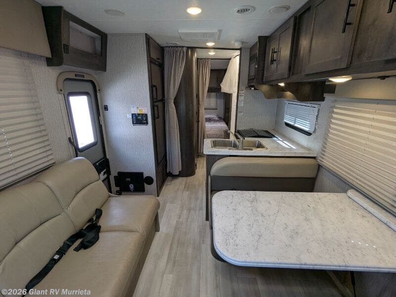 Set out on a family journey with the 2023 Coachmen Leprechaun 270QB Class C RV at Giant RV in California! Ideal for groups, this motorhome features a rear queen bedroom for restful sleep, a 60”x80” cab-over bunk for extra guests, and a jackknife sofa for relaxed lounging, sleeping up to 8. The kitchen boasts a 6 cu. ft. fridge to keep food fresh, a 3-burner cooktop for tasty meals, and a microwave for quick snacks. Enjoy a 15’ power awning for shaded relaxation. Equipped with a 13,500 BTU A/C for cool comfort, a 30,000 BTU furnace for warmth, and a 4.0kW Onan generator for reliable power.