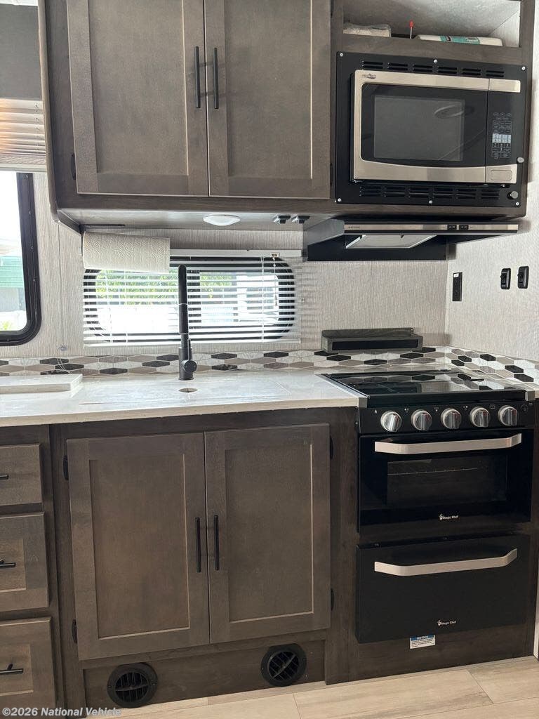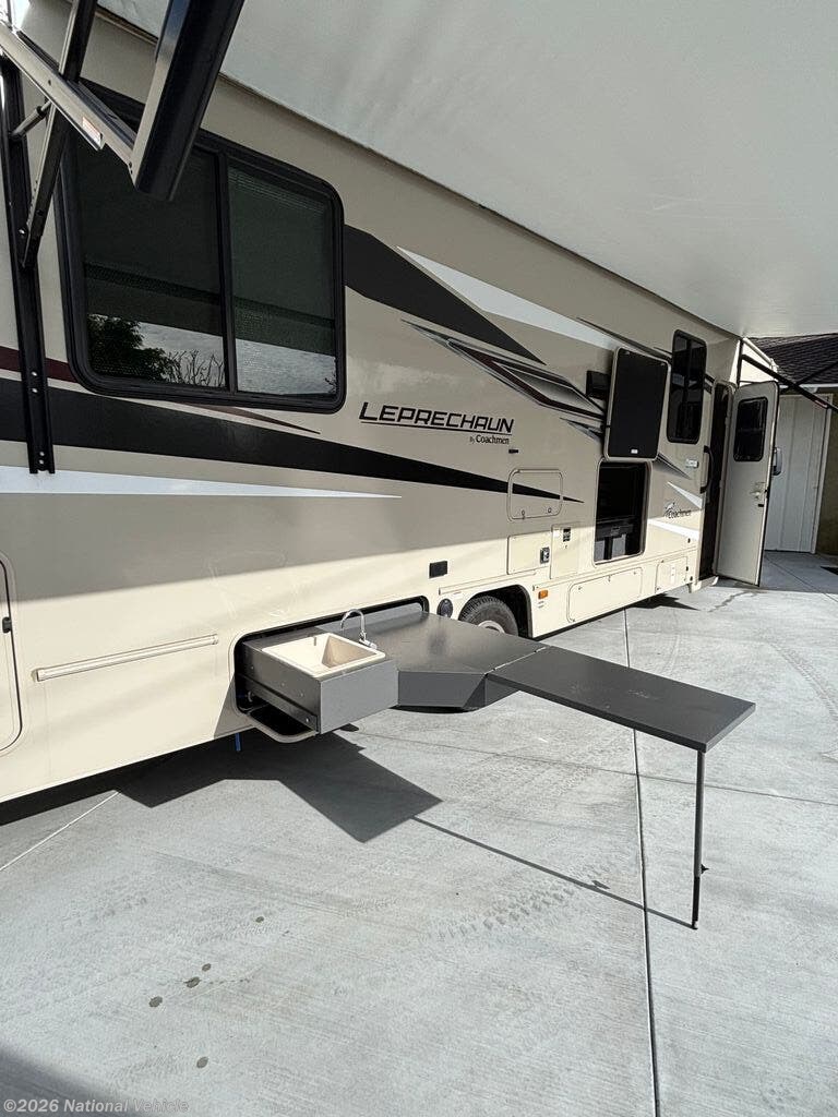 Experience the perfect blend of comfort, style, and versatility with this 2023 Coachmen Leprechaun 319MB 32' 11" Class C motorhome, thoughtfully designed for families, adventurers, and full-time travelers alike. Built on a dependable Ford chassis and powered by a smooth-performing gas engine, this coach delivers confident handling whether you're cruising highways or exploring scenic backroads. Inside, the spacious 319MB floorplan offers a private mid-bath layout that maximizes functionality and privacy, while the bright living area features comfortable seating, a large entertainment center, and panoramic windows that bring in plenty of natural light. The well-equipped kitchen includes solid surface countertops, a 12 volt residential-style refrigerator, three-burner cooktop, microwave/convection, and generous cabinetry, making meal preparation easy and enjoyable. The private master bedroom provides a relaxing retreat with a comfortable queen bed and ample wardrobe storage, while additional sleeping options such as the overhead cab bunk and convertible dinette offer flexibility for family and guests.