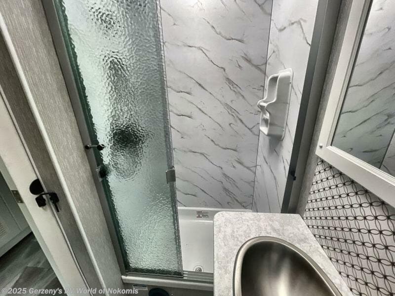 Your family will love this spacious coach for trips across the country or your local state park. The swivel captain's seats provide more seating, along with the sofa bed, theater seating and booth dinette. There is a 50" LCD TV for rainy day movies and an exterior LED TV under the 20' power awning if the weather is cooperating. The full bath includes a glass shower door, plenty of counter space, and a shower skylight for added light, and the rear bedroom will be your oasis away from it all. Here, you'll find a king bed, a wardrobe for your clothes, plus a 32" LCD TV.