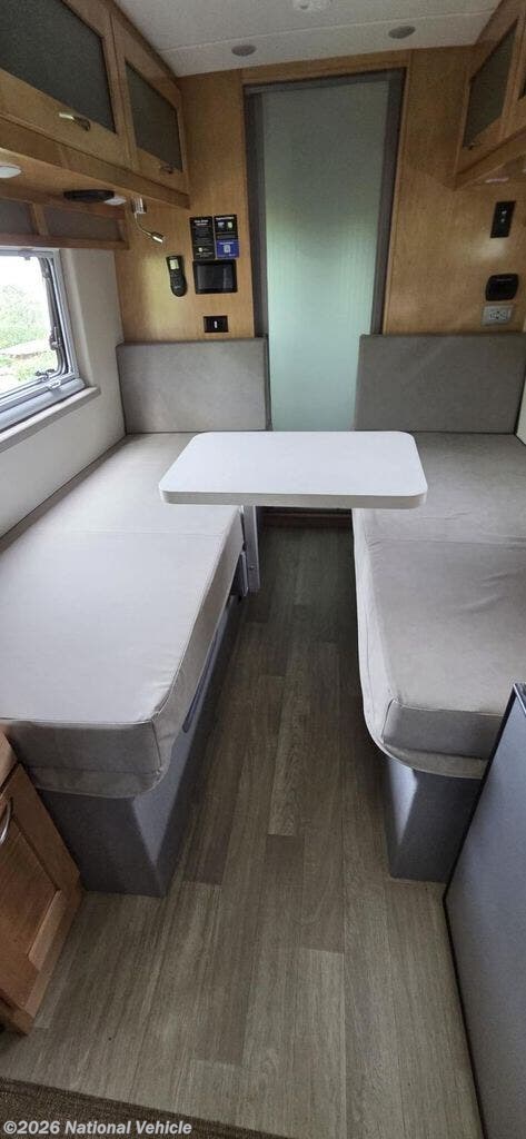 Inside, the Nova M-20 RB showcases refined craftsmanship and modern European design. Beautifully finished Amish-built cabinetry anchors the interior with rich detail, soft-touch surfaces, and intelligent space utilization create an elevated residential feel. The versatile rear twin-bed layout, sleek wet bath, and convertible lounge maximize comfort without sacrificing functionality. Premium systems such as Truma climate control, multiplex lighting and controls, and superior insulation deliver true four-season capability.