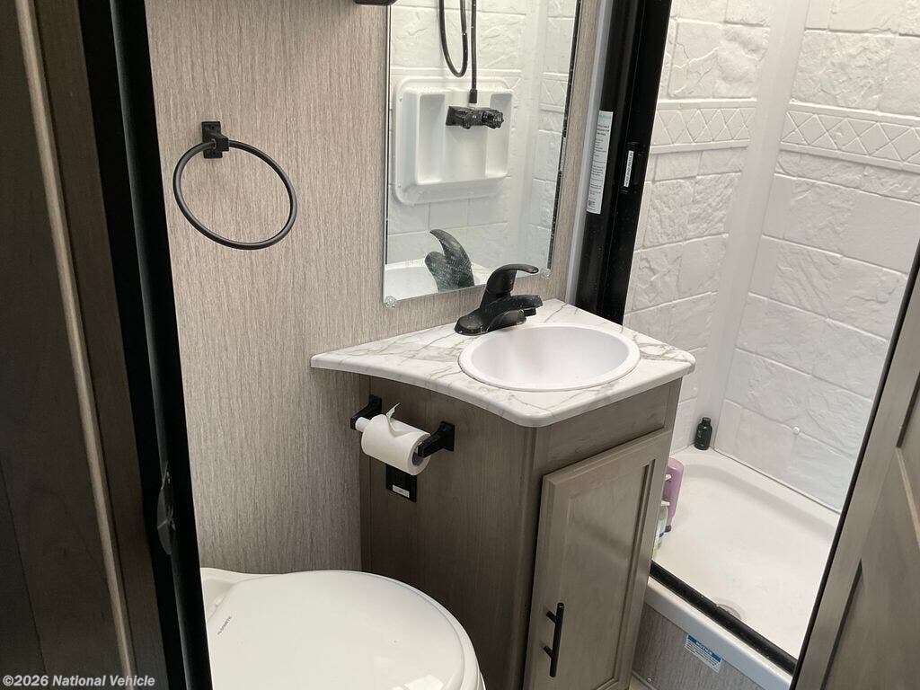 The Prism Elite line is known for its elevated fit and finish, and the 24FS floorplan delivers an open, intelligently designed living space that feels far larger than its footprint. Large windows flood the interior with natural light, while high-end materials, soft-touch cabinetry, and modern d?cor create a warm yet contemporary atmosphere ideal for extended travel or weekend escapes.