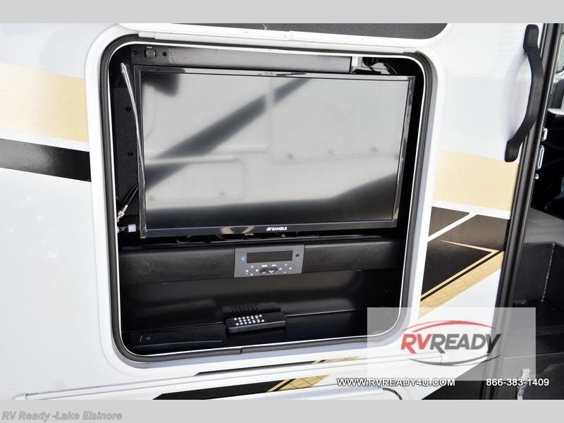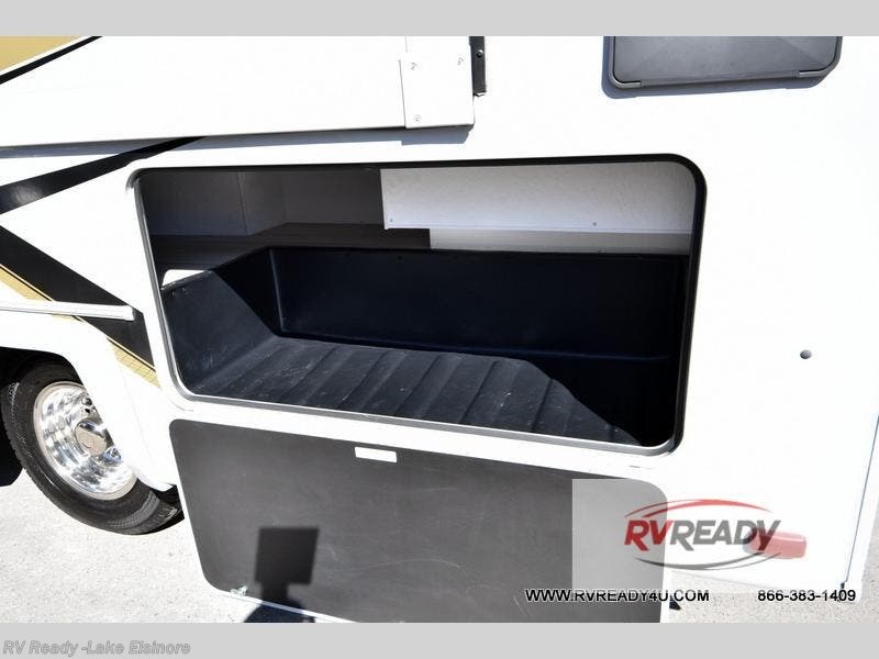With extra space from the full-wall slide, you'll love spending time in this Prism Select Class C diesel motorhome! You can bring along the whole gang because the RV queen bed, the U-shaped dinette, and 45" x 80" bunk above the cab will provide plenty of sleeping space, and the ample storage will be very helpful for everyone's belongings. You can also stock up on some treats and goodies with the pantry slide out, and the full bathroom is a great convenience to have whenever you need to get cleaned up. Plus, there is an optional outside entertainment center that can be added and the dinette can be switched out for an optional recliners!