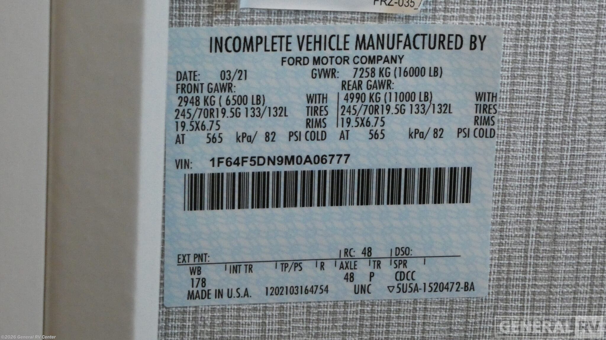 - VIN1F64F5DN9M0A06777