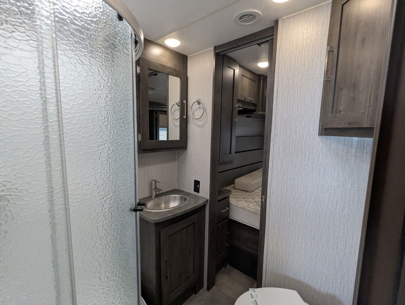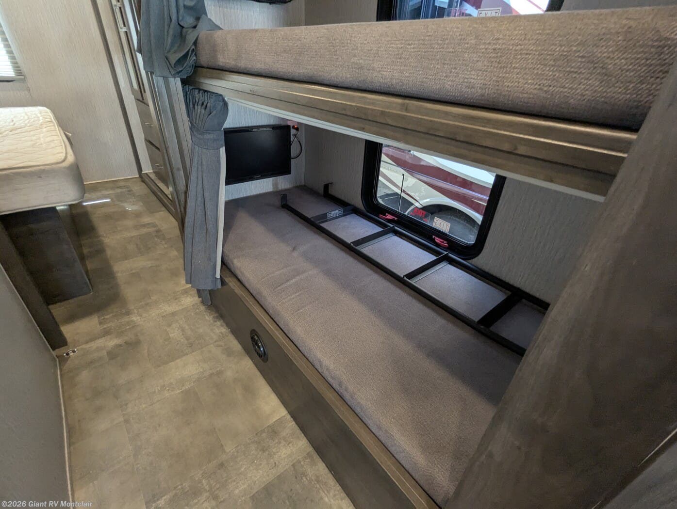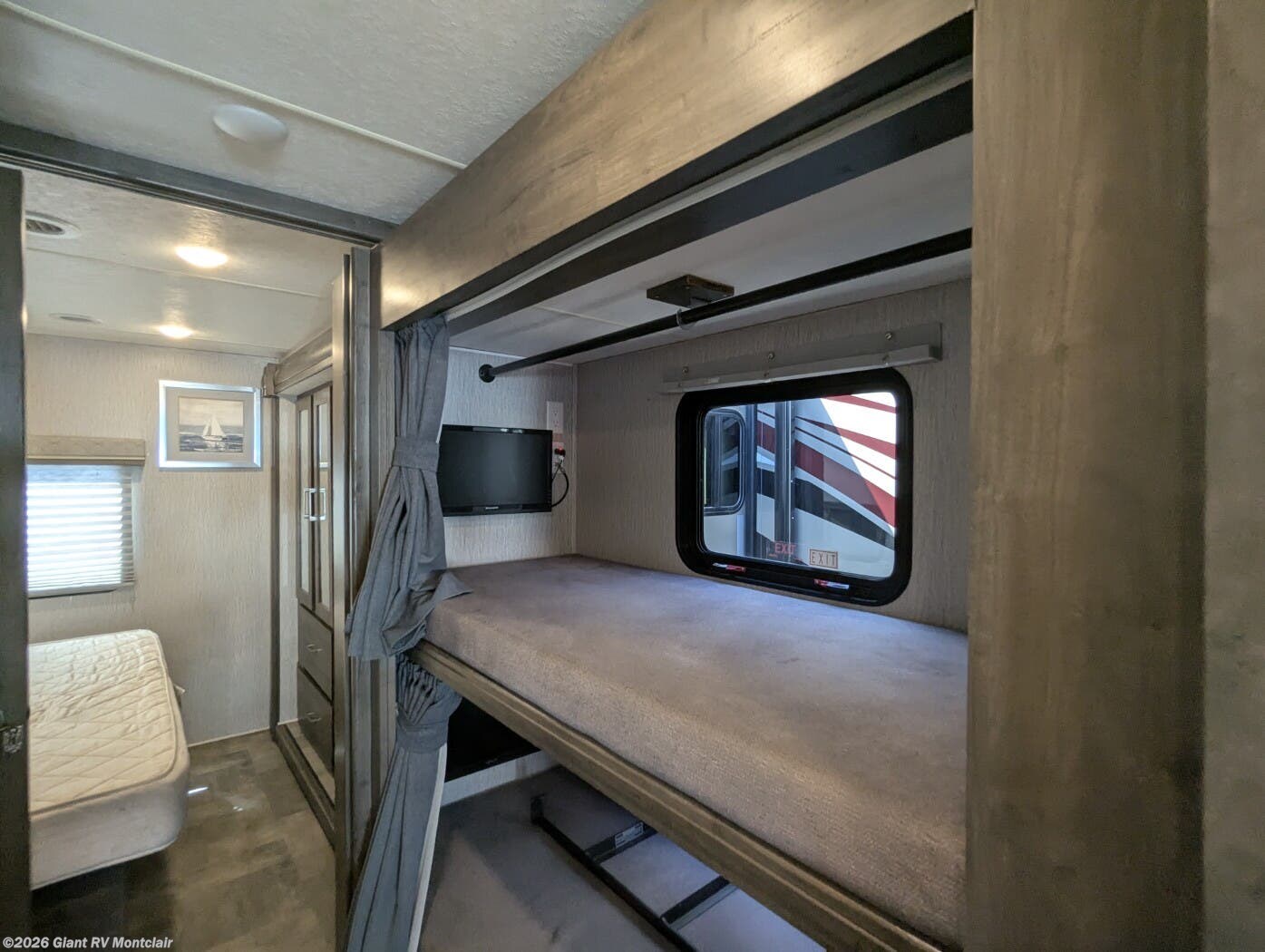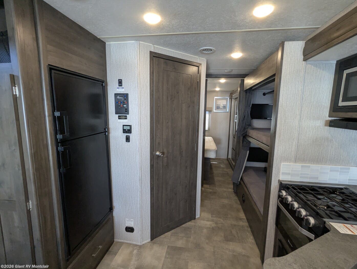 - Family-Friendly Bunkhouse: Sleeps up to 8 with bunk over cab, rear bunk beds/wardrobe, rear private queen bedroom, and one slideout for open living space.