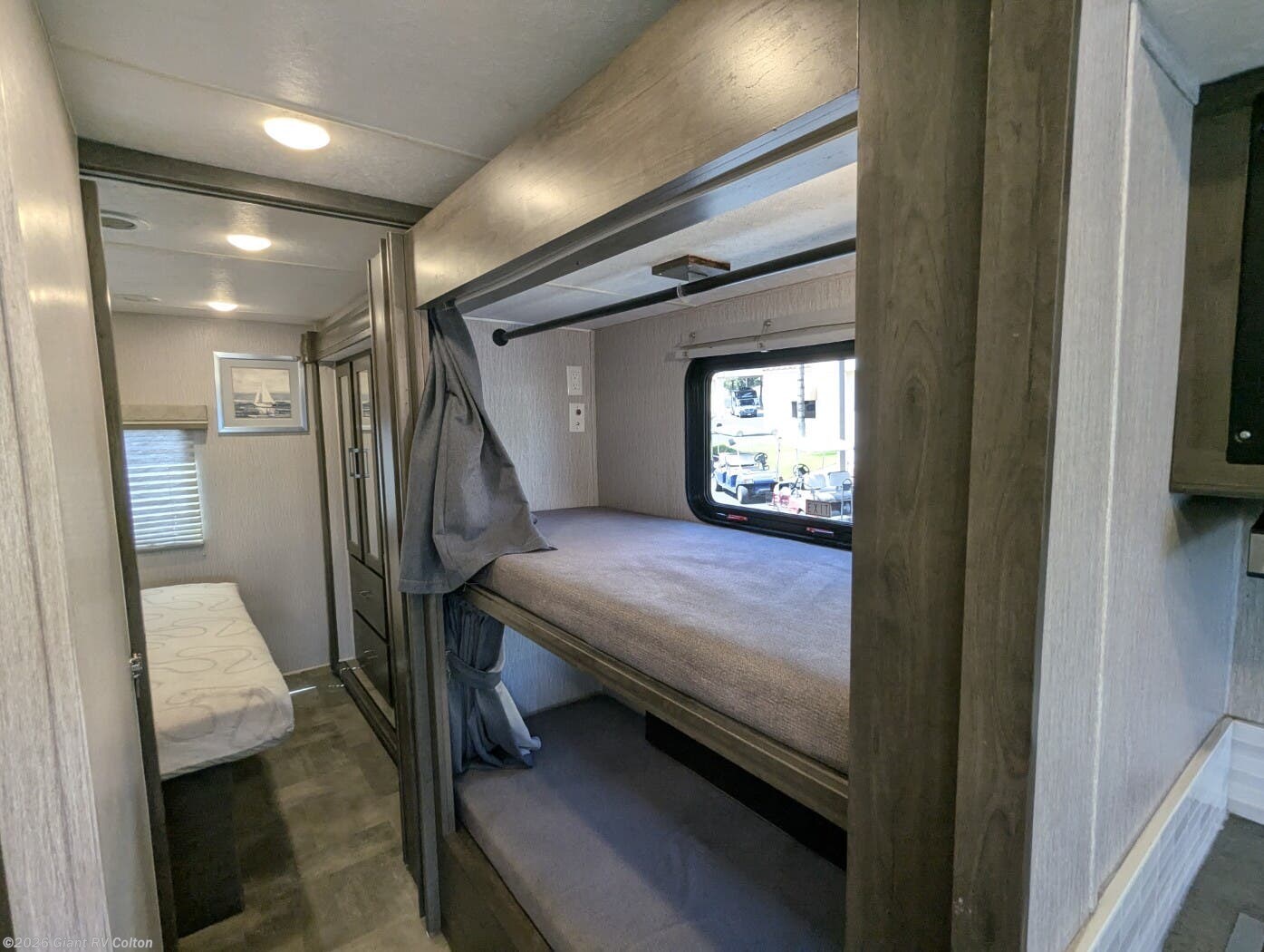 - Family-Friendly Sleeping: Rear 70" x 74" king bed, bunk beds, bunk over cab, and convertible dinette, sleeping up to 8.