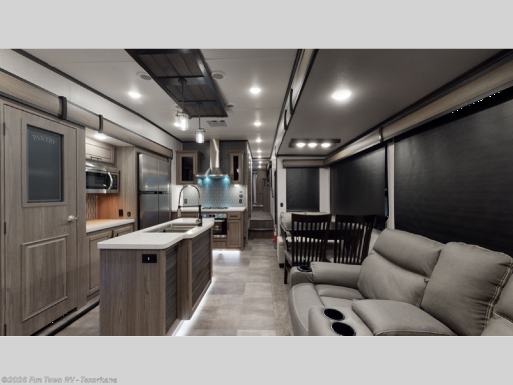 Every element of your home has been considered when creating these CrossRoads RV Cameo fifth wheels! From the oversized pantries, master suites, and full size theater seats with heat and massage to durable construction with the largest I-beam chassis in the industry. They also have the industry's first front windshield, an aerodynamic profile, and a full walk-on roof with an Alpha Ply II roof material. These modern fifth wheels were created with the customer in mind which is why they have convenient features like pass-through heated storage, spacious walk-in closets, an AM/FM/Bluetooth sound bar, a 6-point hydraulic auto level, and a 2" receiving hitch with 4-way plug. The Twice Is Nice package adds even more comforts like dual fireplaces for cozy evenings inside, dual awnings to protect you rain or shine, dual A/C units to keep you cool on those hot summer days, and dual wireless charging stations so your electronics can be at 100%. Come find the right model for you!