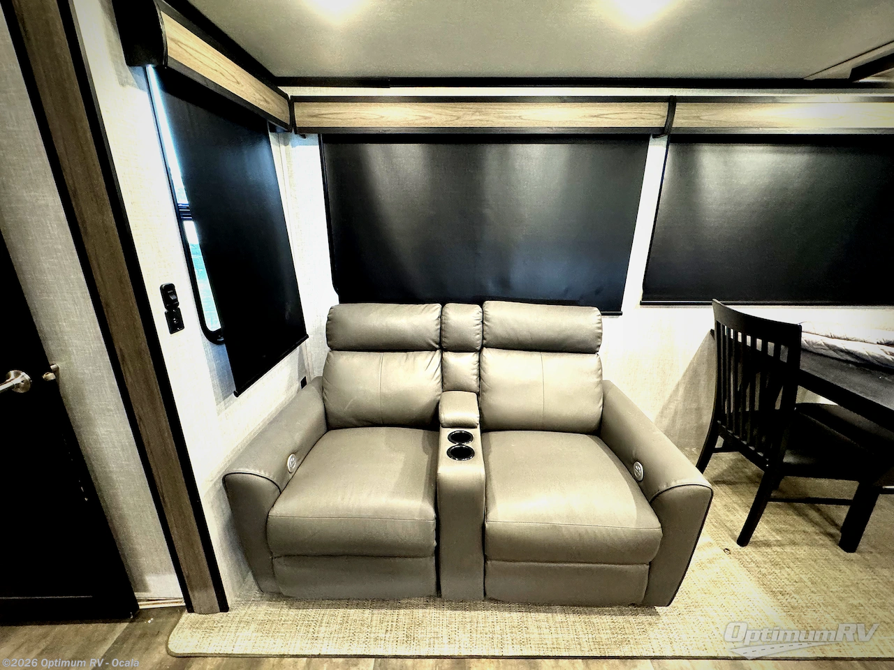 Every element of your home has been considered when creating these CrossRoads RV Cameo fifth wheels! From the oversized pantries, master suites, and full size theater seats with heat and massage to durable construction with the largest I-beam chassis in the industry. They also have the industry's first front windshield, an aerodynamic profile, and a full walk-on roof with an Alpha Ply II roof material. These modern fifth wheels were created with the customer in mind which is why they have convenient features like pass-through heated storage, spacious walk-in closets, an AM/FM/Bluetooth sound bar, a 6-point hydraulic auto level, and a 2" receiving hitch with 4-way plug. The Twice Is Nice package adds even more comforts like dual fireplaces for cozy evenings inside, dual awnings to protect you rain or shine, dual A/C units to keep you cool on those hot summer days, and dual wireless charging stations so your electronics can be at 100%. Come find the right model for you!