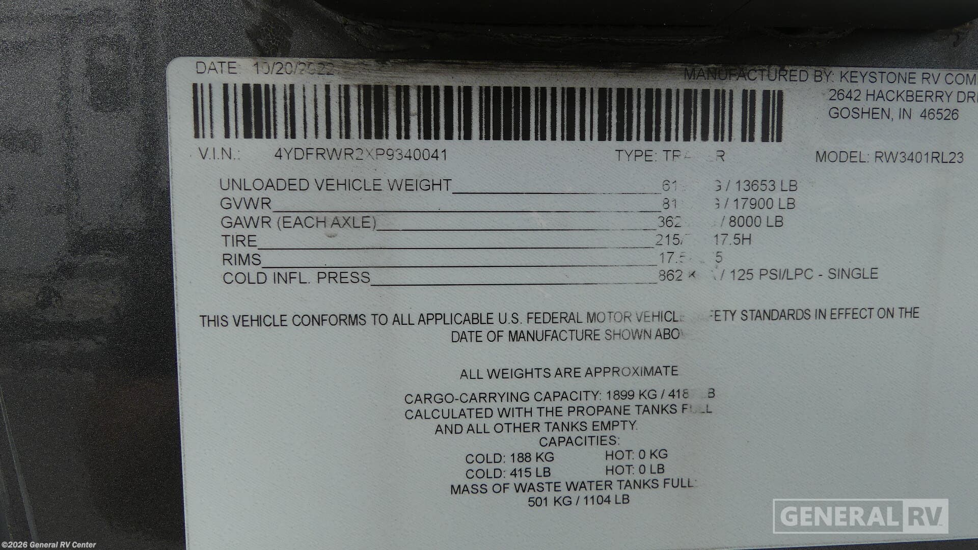 - VIN4YDFRWR2XP9340041