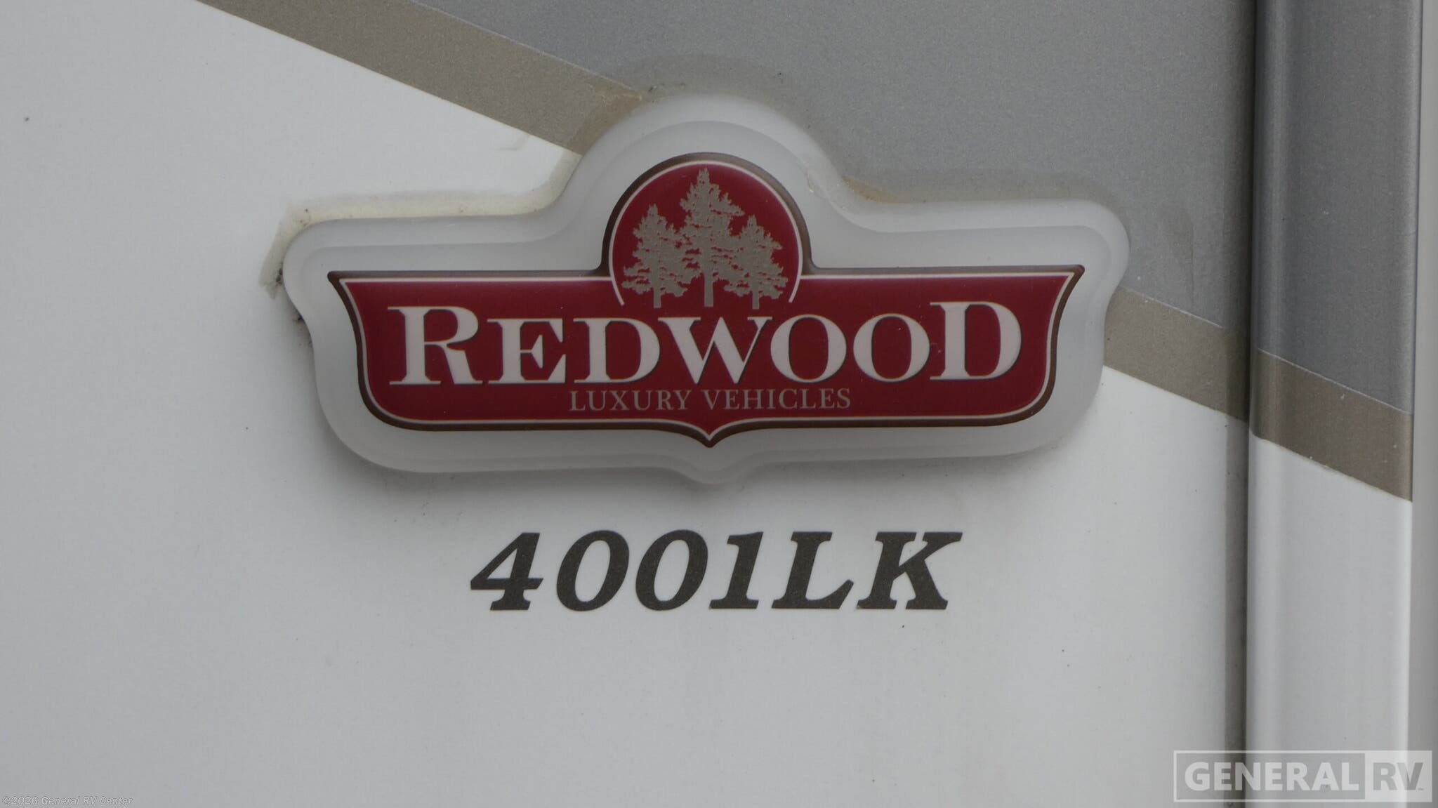 - ## Crossroads RV fifth wheel 4001LK highlights - Rear Kitchen - Four Slides - Theater Seats - Bath and a Half - Master Suite - Ceiling Fan One step inside this fifth wheel and you'll see why it's an award-winning most-popular unit! You'll love the rear kitchen that includes ample countertop for food prep and a slide including the refrigerator, pantry and microwave for added moving around space. Head to the main living area where you can enjoy some family time on the theater seats, and the dinette with chairs will be the perfect place for a game of cards. The half bath is right off of this room for convenience, and your guests or kids can convert the tri-fold sofainto a bed for sleeping space at night. You will love the master bedroom with a king bed slide out, a dresser with a flip-up lid, plus a 39" TV. The front full bath is super spacious, and it includes a large walk-in wardrobe where you can even add a washer and dryer if you choose! You are going to wish you found the Redwood fifth wheels sooner! With all of the residential comfort and modern luxury, you will be impressed. The Williamsburg Furniture Collection includes two premium dinette chairs, a buffet-style adjustable dinette with leaf extension, a residential-style sofa, and powered theater seating. The luxury further extends to the bedroom where you will find a gel-foam king bed with tilt and C-PAP shelves on both sides of the bed. The straight roof line gives a luxury profile, and there are preparations for a wireless backup camera as well as solar power. The seamless residential insulated heat ducts will efficiently heat your unit, and there is an exterior radio in the fully finished and heated pass-through with slat board storage.