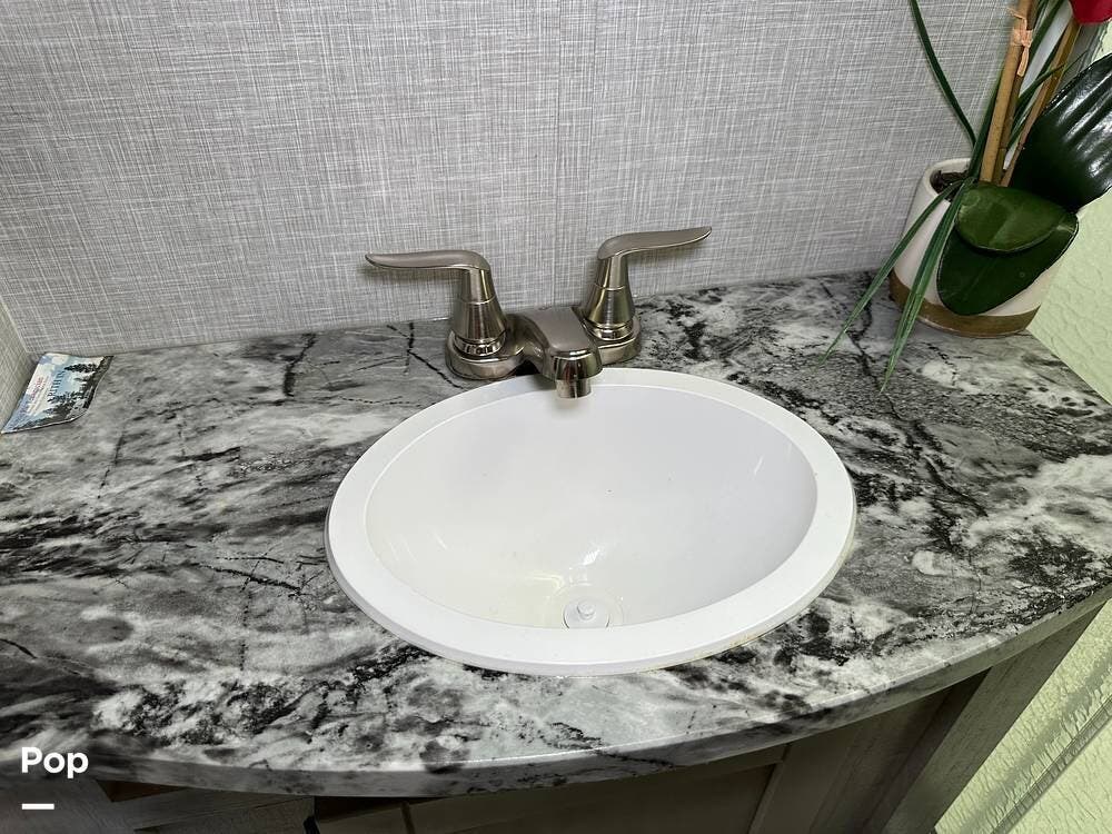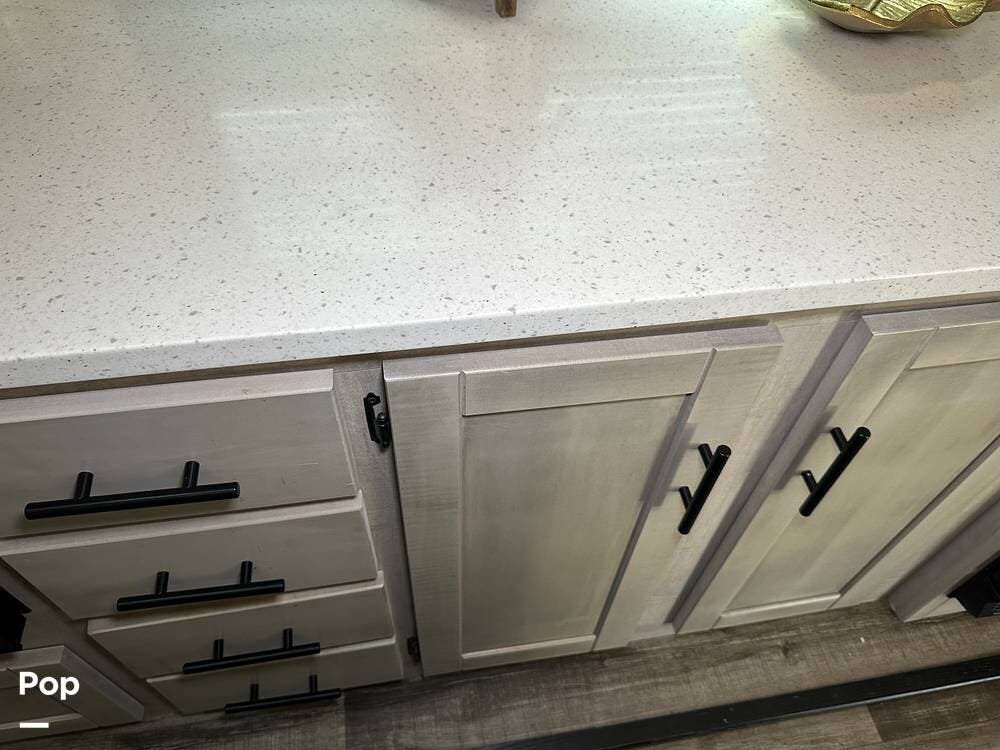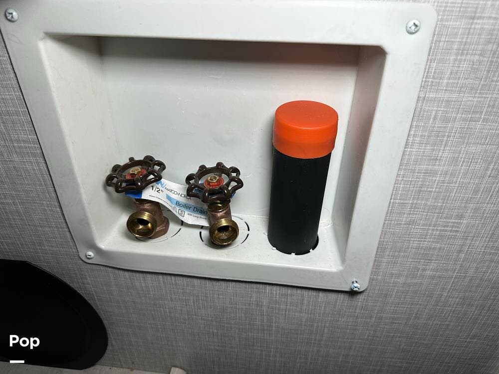 The master bedroom features a large king-sized bed, and if you are considering full-time living, you will be pleased to see that it is equipped with a washer/dryer prep area, allowing you to add these appliances if desired.