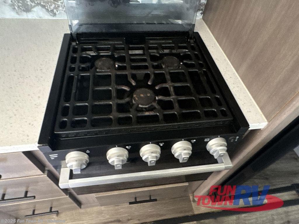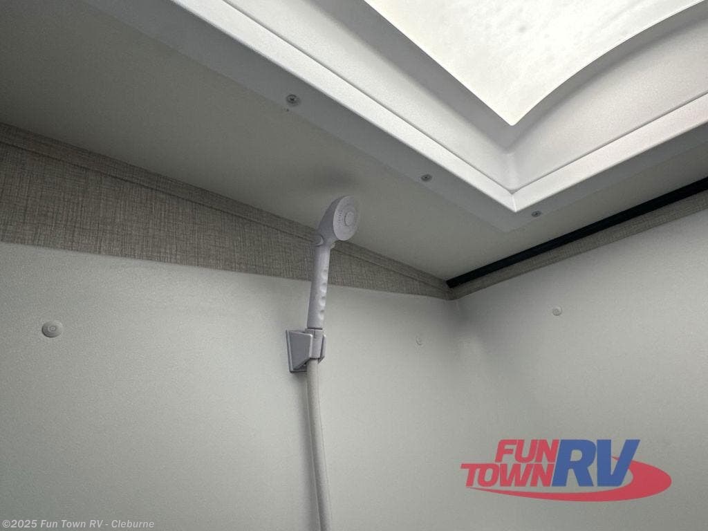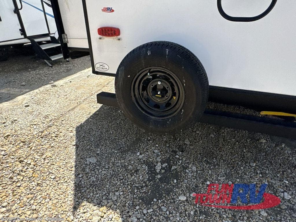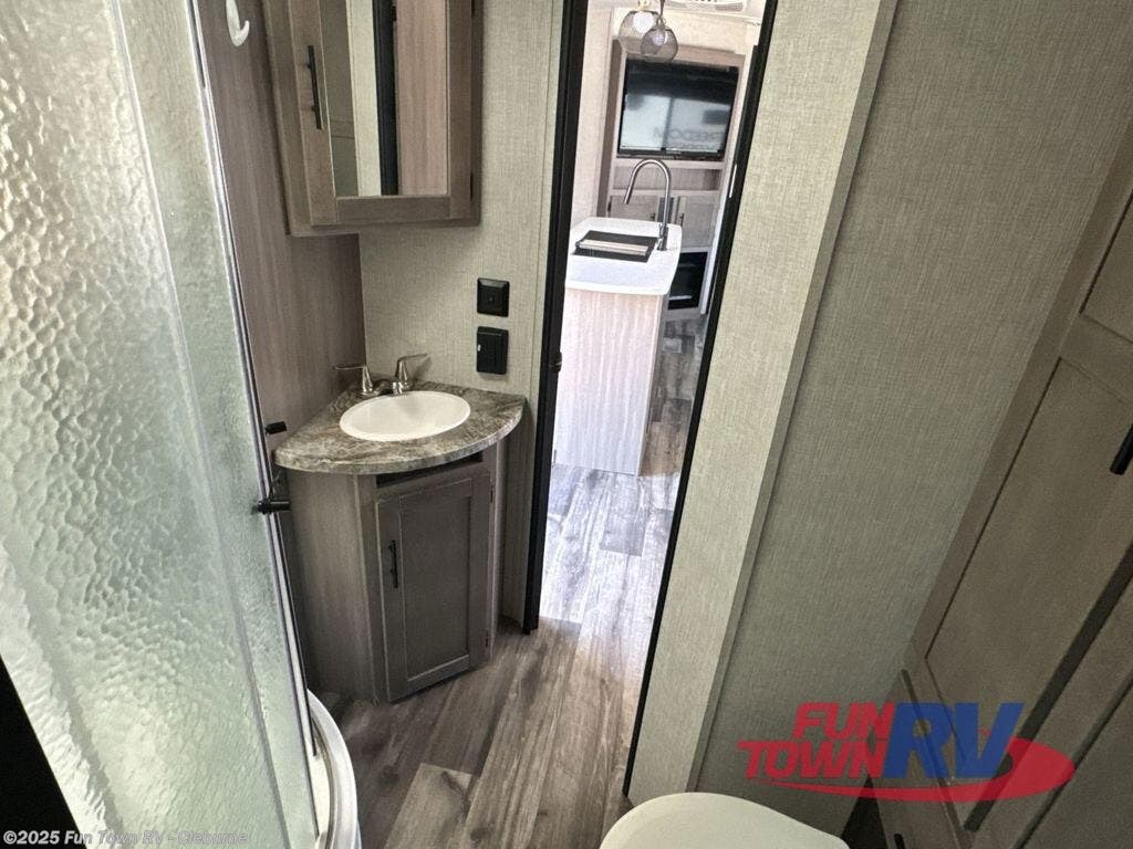 With any Sunset Trail travel trailer by CrossRoads RV, the interior offers a stainless steel farmhouse sink with a cover, solid surface kitchen countertops, and a docking station with 12 Volt, USB Port, and 110 Outlets. Also included is a 13,500 BTU air conditioner plus upgraded insulation with roof and floor reflective foil for added comfort, plus sturdy construction elements like a plywood bed board with strut assist, residential wood window trim, and hardwood cabinet doors. Make your lightweight and comfortable RV decision today!