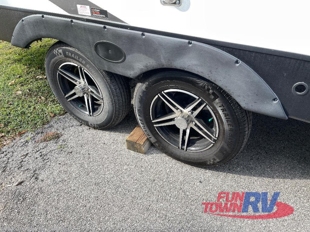 With any MPG travel trailer or toy hauler by Cruiser you will find a 6' 11" barrel roof, Azdel composite laminated walls, and a two-tone fiberglass front cap with LED lighting for a sleek look. There are seamless kitchen countertops and plywood flooring that will be easy to clean, plus residential hardwood cabinets with hidden hinges for a more at-home feel. The slam latch baggage doors with magnetic latches will make loading up easier than ever, plus the full belly storage system includes LED lights you are sure to appreciate. Each model also includes multiple charging stations with 12v and USB ports, a four speaker soundbar system to listen to your playlists, and a dual ducted BTU A/C to keep you cool during those hot summer months!