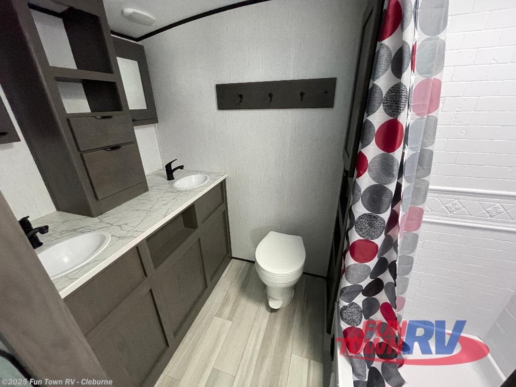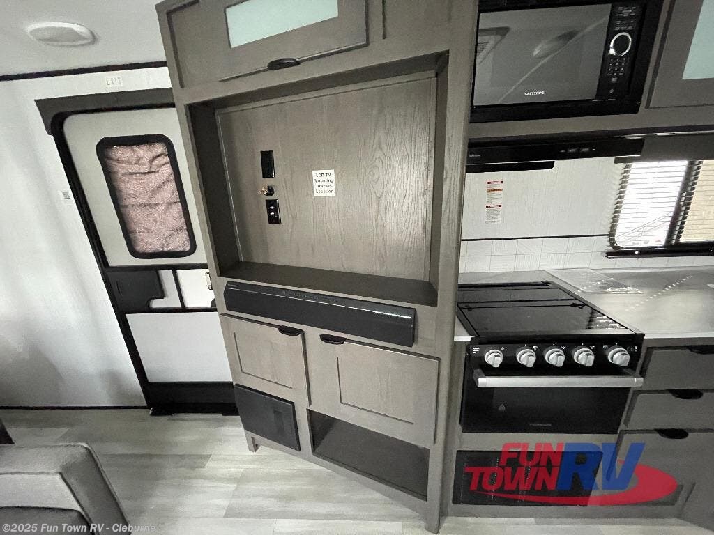 Escape the hustle and bustle of the city life and retreat to the great outdoors in this spacious travel trailer. You will have plenty of space to relax in the main living area thanks to the slide out, and here you'll find a U-shaped dinette. There is also a sofa and an entertainment center where you can add an optional LED TV. There is an outside kitchen to cook breakfast outdoors, plus a full kitchen indoors if the weather isn't cooperating. You are sure to love the full rear bath that includes dual bath sinks, a spacious shower, plus a linen closet to store clean towels!