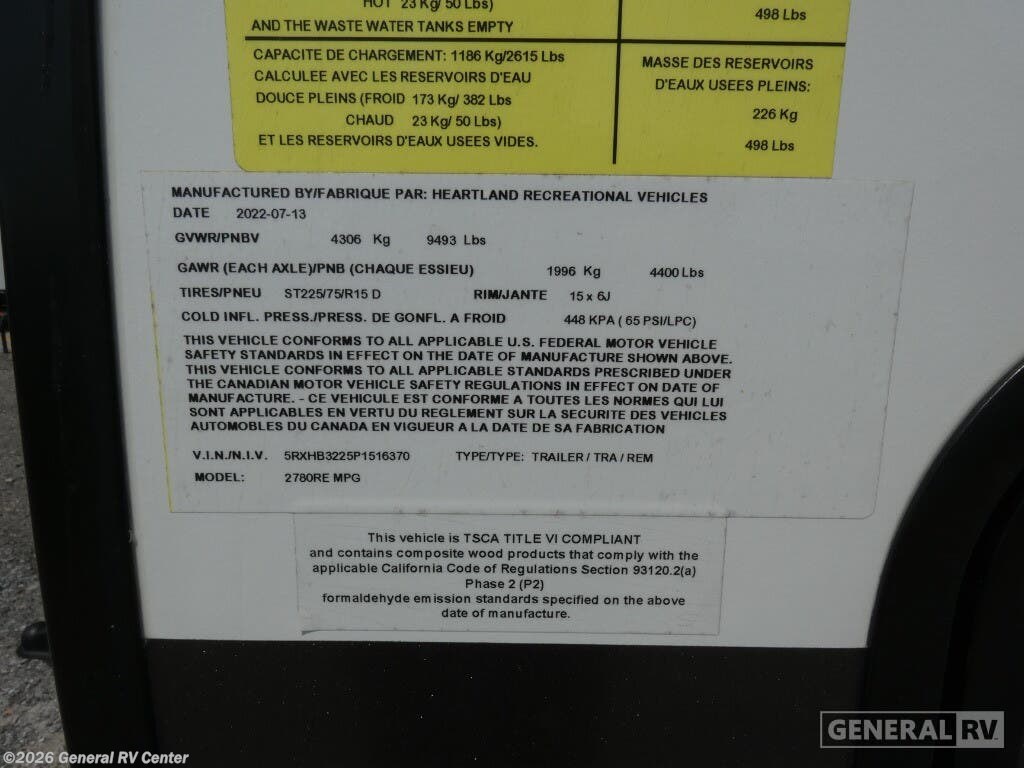 Experience the perfect blend of comfort and style with the 2023 Cruiser RV MPG 2780RE. This travel trailer invites you to unwind in its spacious rear living area, where plush seating and an entertainment center create a cozy retreat. The center kitchen is thoughtfully designed with a full-size electric refrigerator and a three-burner cooktop, ensuring you have everything you need to whip up delicious meals on the road. The 18 ft. powered retractable awning extends your living space outdoors, making it ideal for relaxing under the stars. Retreat to the front bedroom, where a luxurious king-size bed promises restful nights. With a clever layout that includes a center bath, convenience is at your fingertips. The trailer boasts a generous cargo capacity, allowing you to bring along all your essentials and more. With a GVWR of 9493 lbs and a dry weight of 6689 lbs, this model is both robust and easy to tow. Discover the perfect balance of adventure and relaxation with the MPG 2780RE. For more details, visit your nearest General RV dealership today!