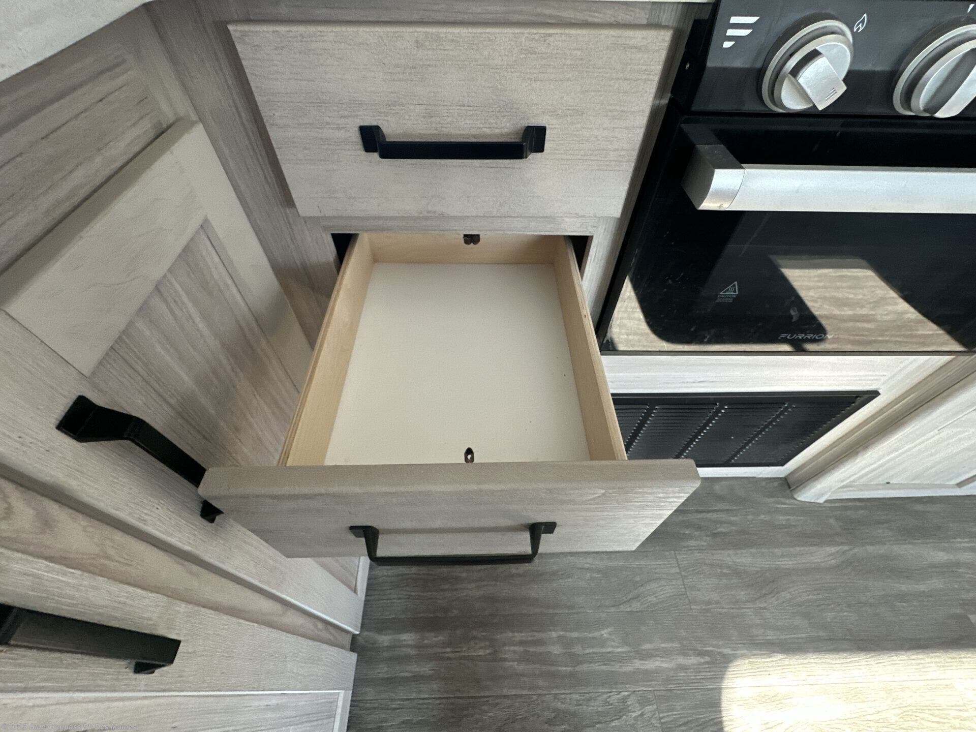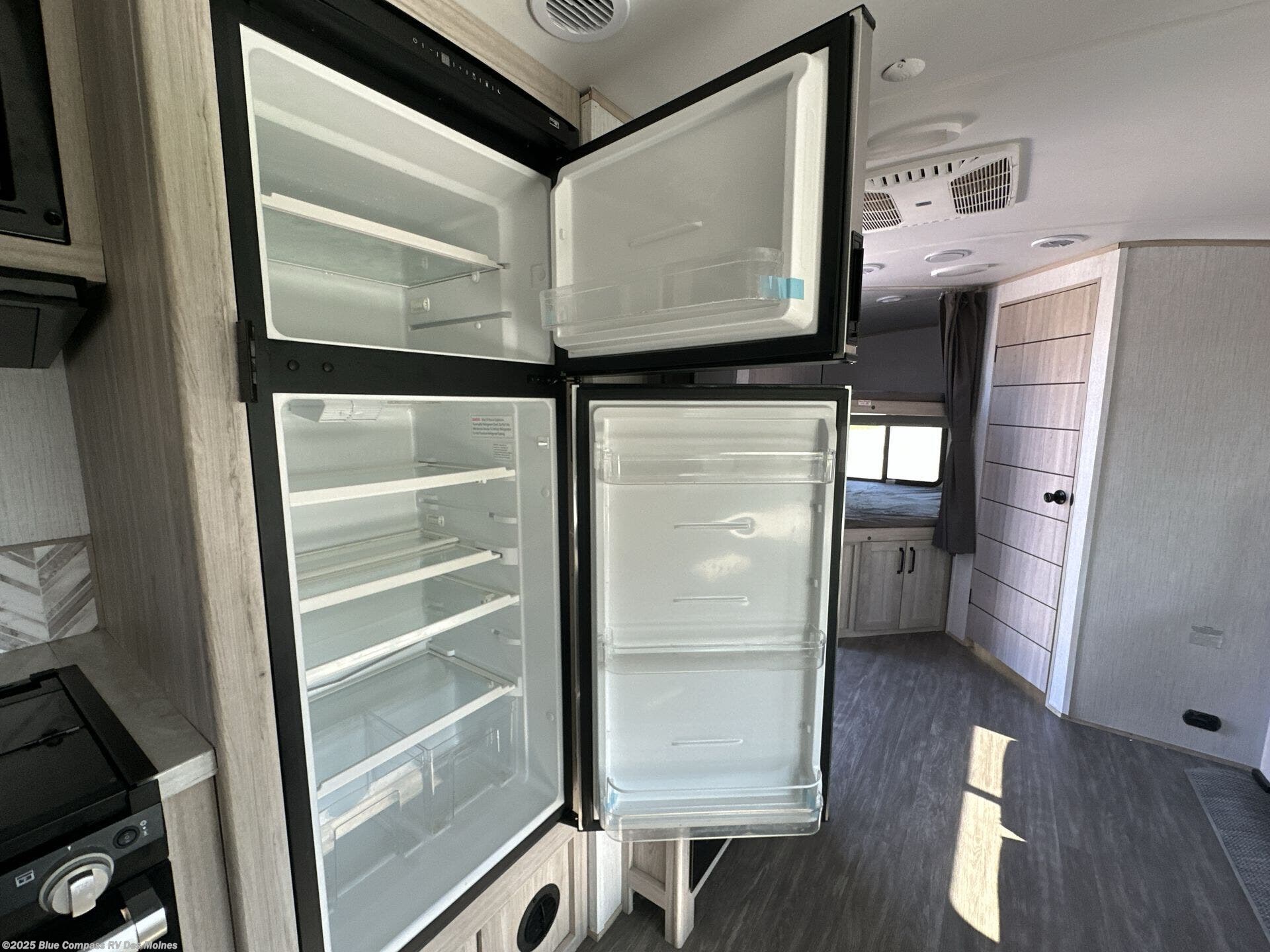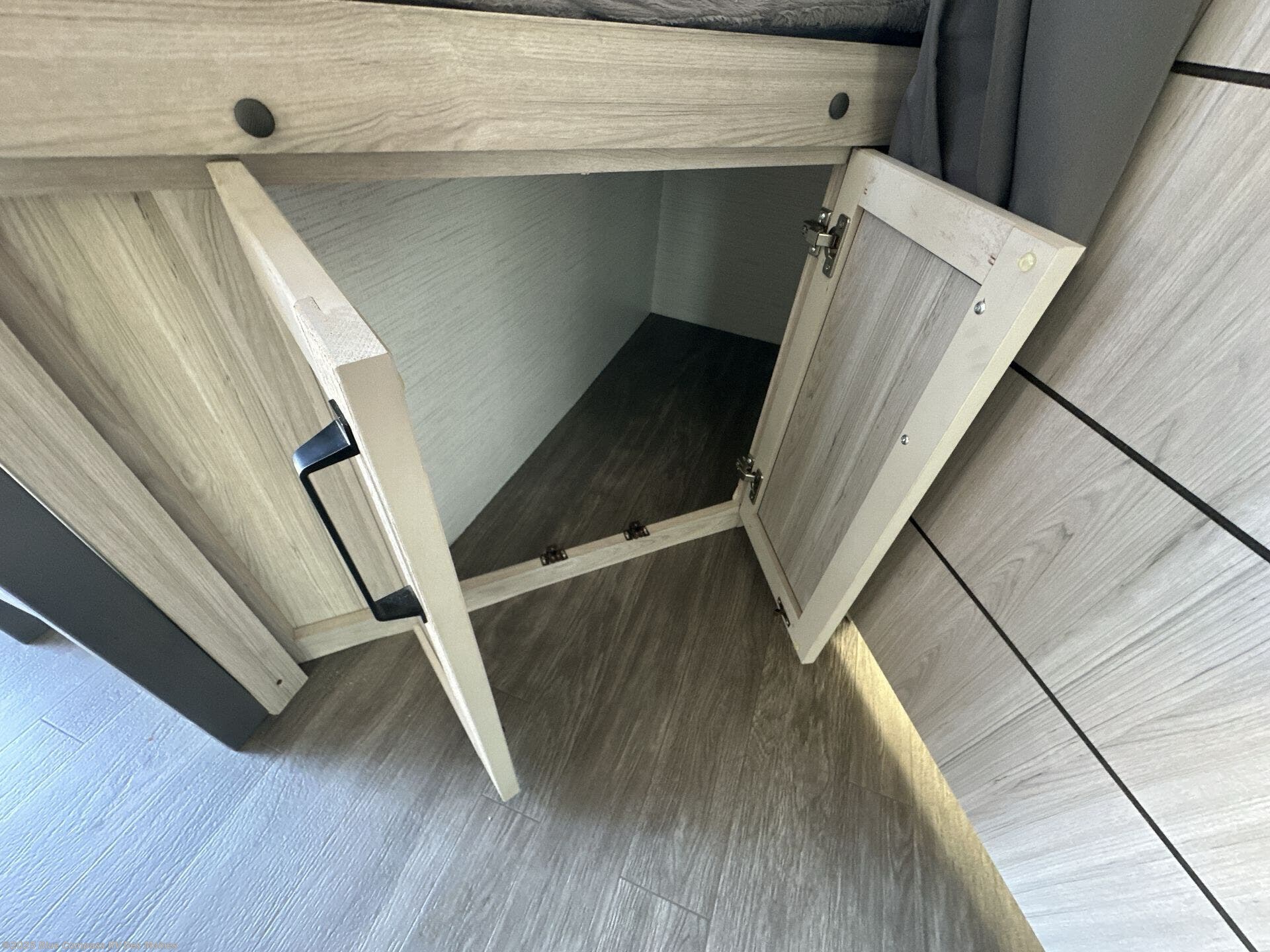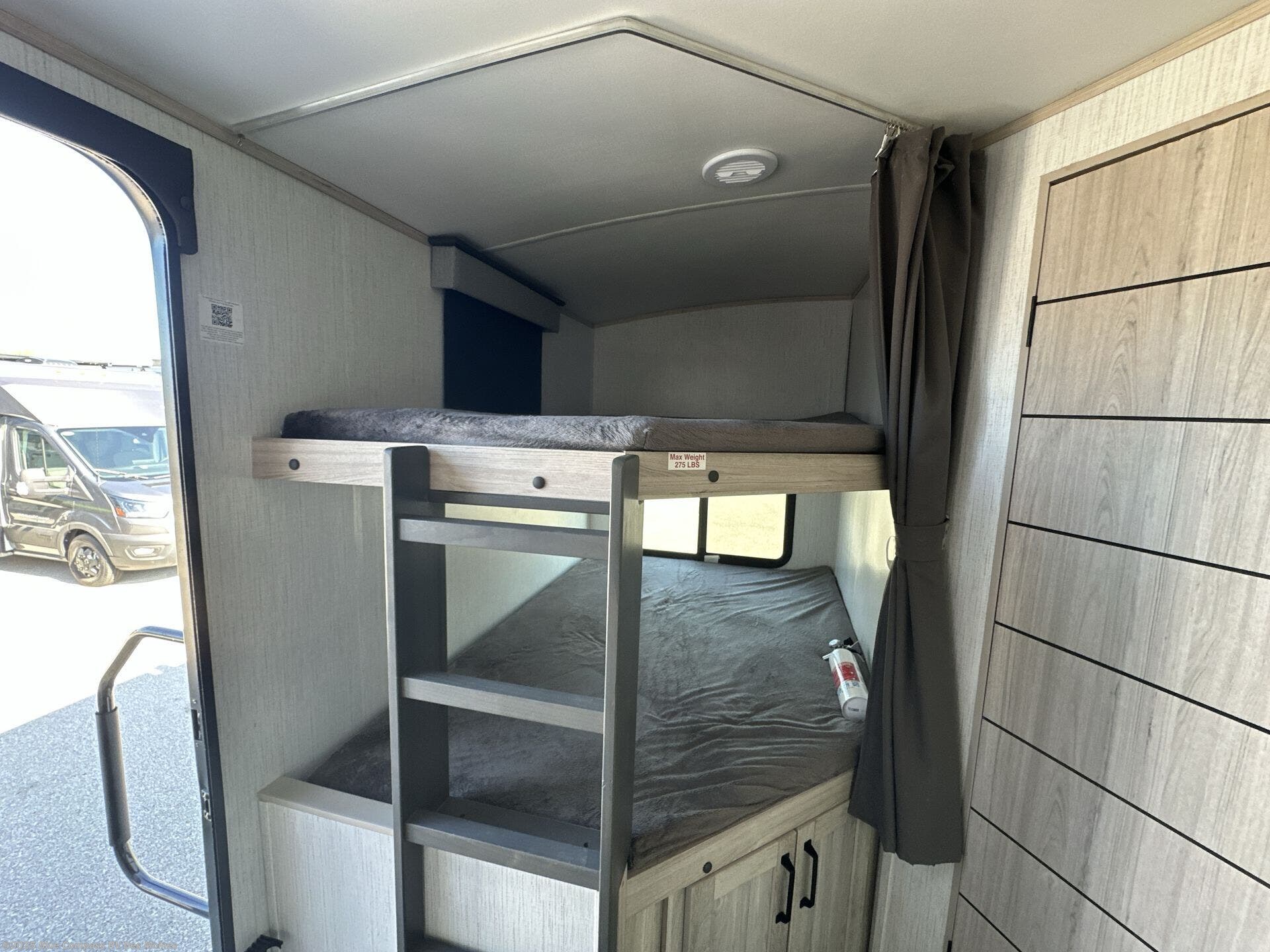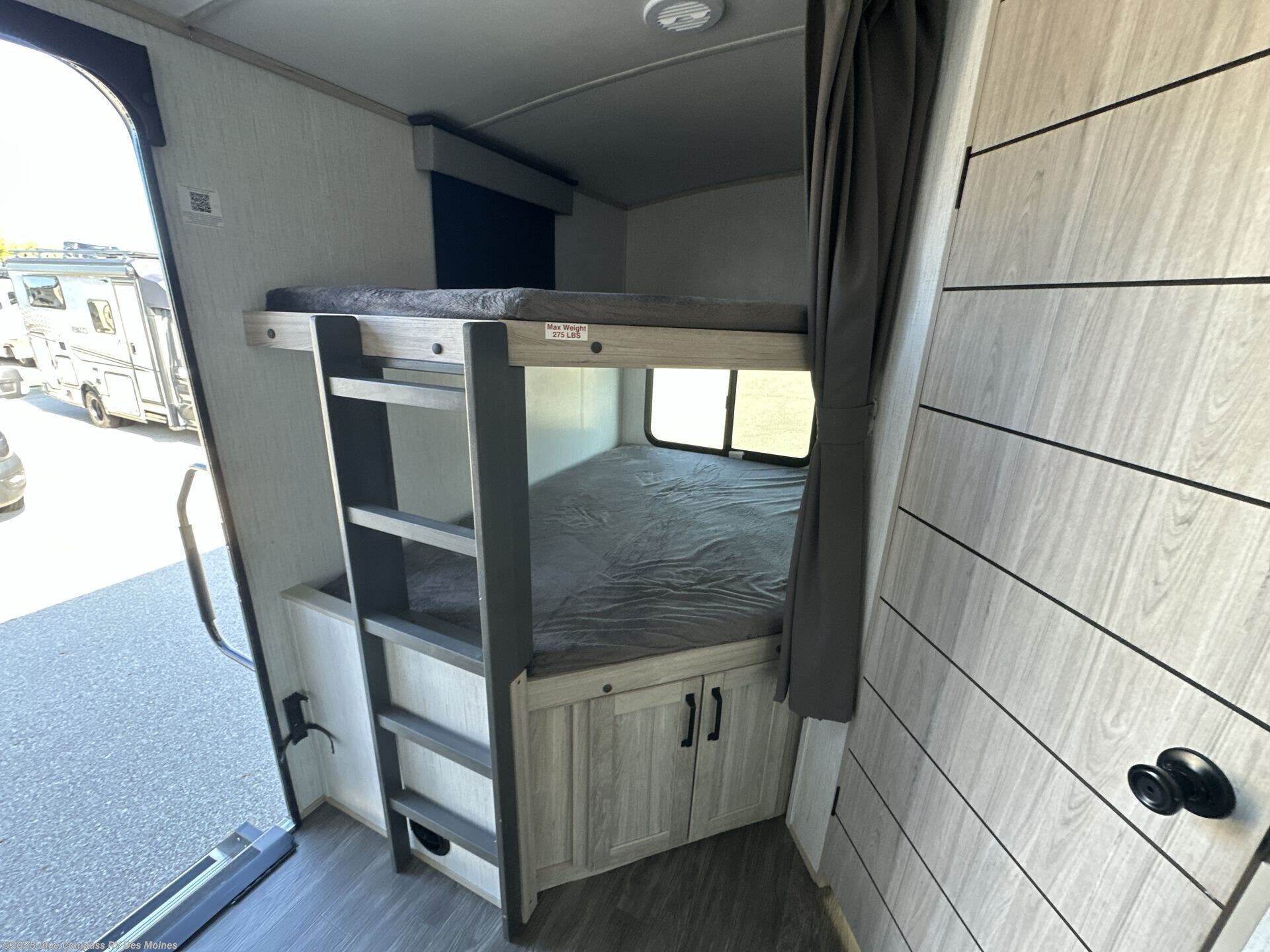 The kiddos will love having a set of double bunk beds to sleep on at night in this travel trailer! They can even invite a friend or two to tag along and sleep on the residential tri-fold sofa or dream dinette once they are converted. The dinette also has hidden seat storage for your needs, plus there is a walk-in pantry big enough to store everyone's favorite snacks. The chef can prepare their best meals either indoors with the three burner cooktop or head to the outdoor kitchen and fry the catch of the day on the two burner cooktop while staying protected by the 20' power awning with LED lights. Enjoy a good night's rest each night on the king bed with a Serta Comfort mattress in the front private bedroom!