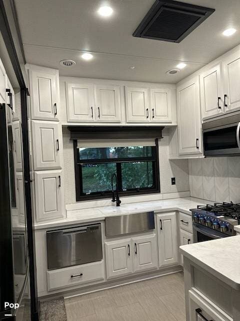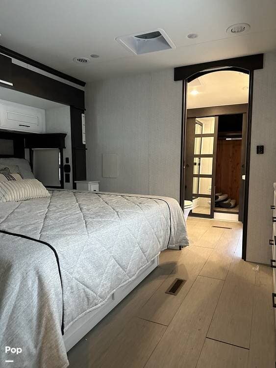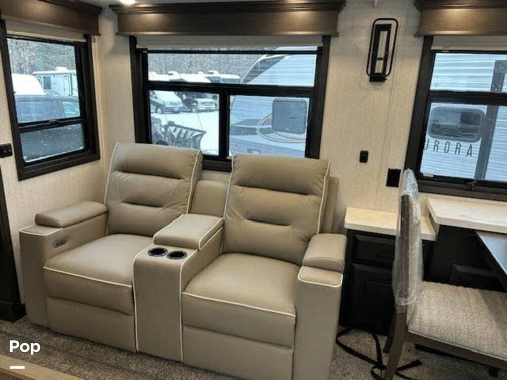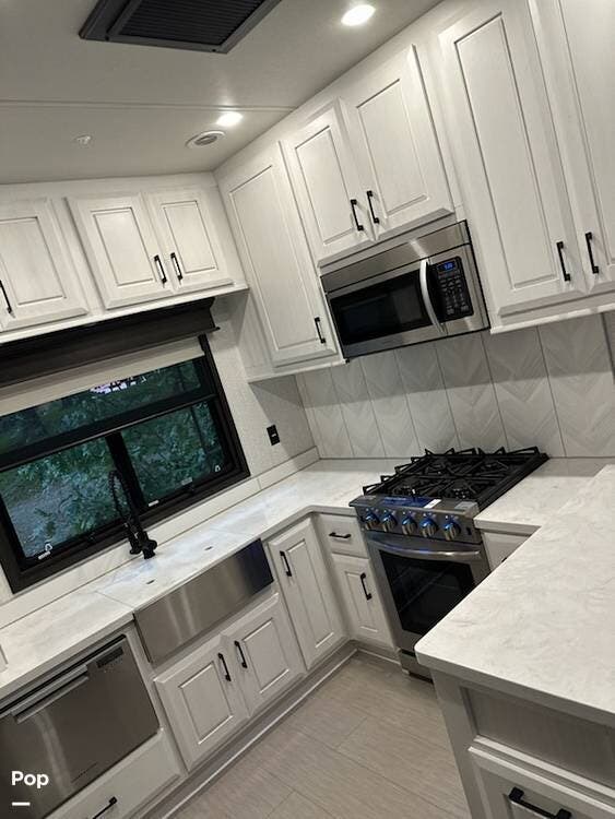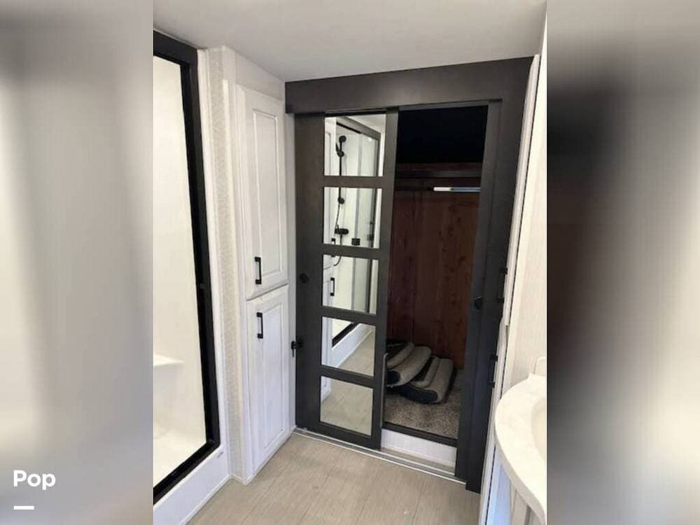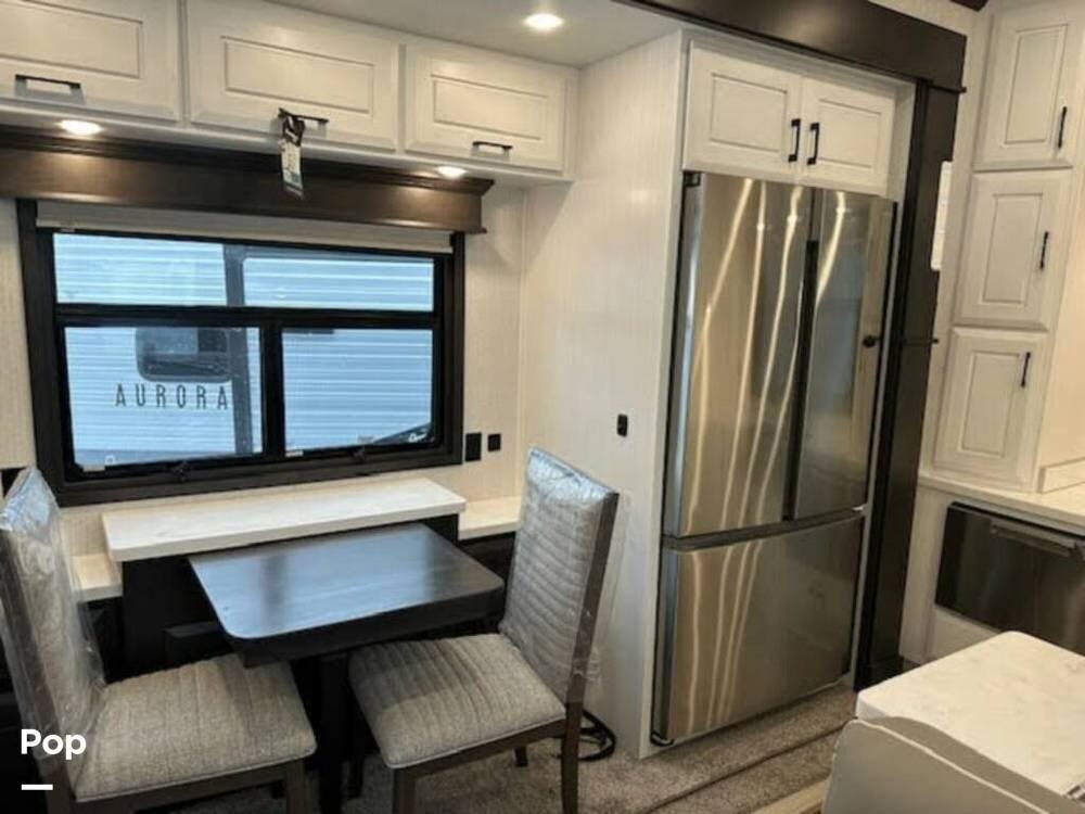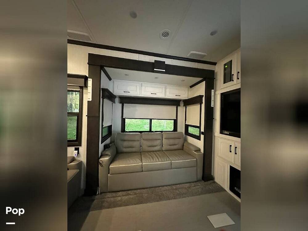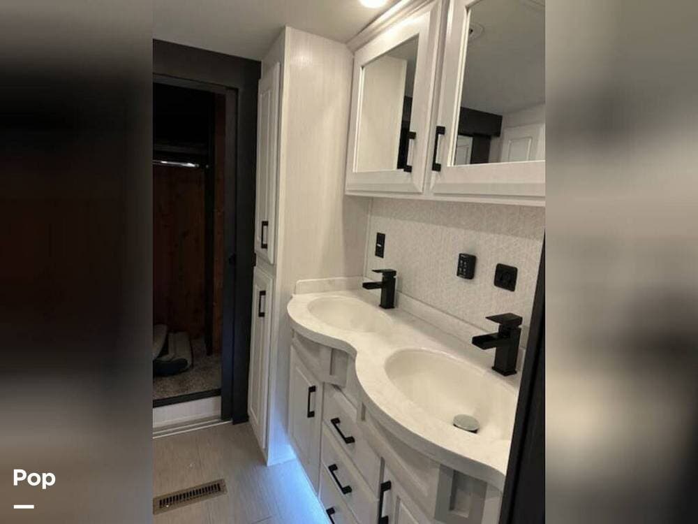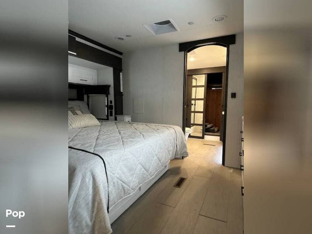 This exquisite residence purchased brand new in April 2023, is now available for those seeking comfort and convenience. Boasting a residential package, this fifth wheel brings the warmth of home to your travels.