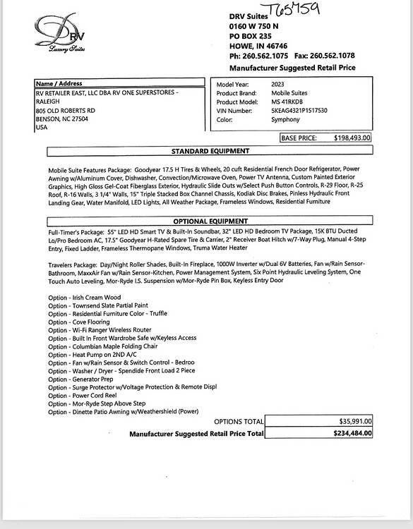 Looking to buy a 2023 DRV Mobile Suites Fifth Wheel RV?