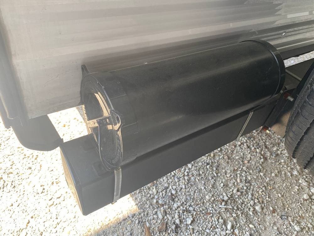 Also included are a Blue-Ox tow hitch and a couple of convenient storage add-ons: a small storage box that sits on top of the rear-left bumper and an additional space to store your sewer attachments.