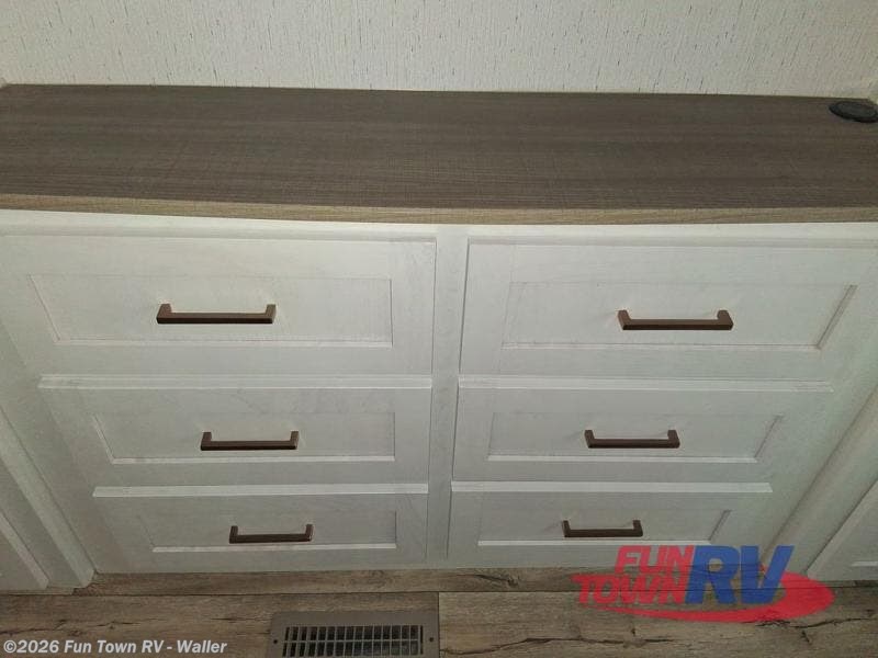 With any Astoria travel trailer, you'll get the Dutchmen construction advantage with features such as HyperDeck floor construction which includes linoleum flooring, vacuum bonded lamination, and a fully enclosed underbelly, plus a fiberglass cap with windshield. Some standard features that will impress you include an exterior spray port to keep the sand outside, arched interior ceiling for more standing space, dual 20 lb. propane tanks, dark-tinted safety glass windows, and stainless steel appliances so you can keep your bellies full with home cooked meals. Plus, an Astoria Premium package for even more convenience and comforts. Choose your favorite today!