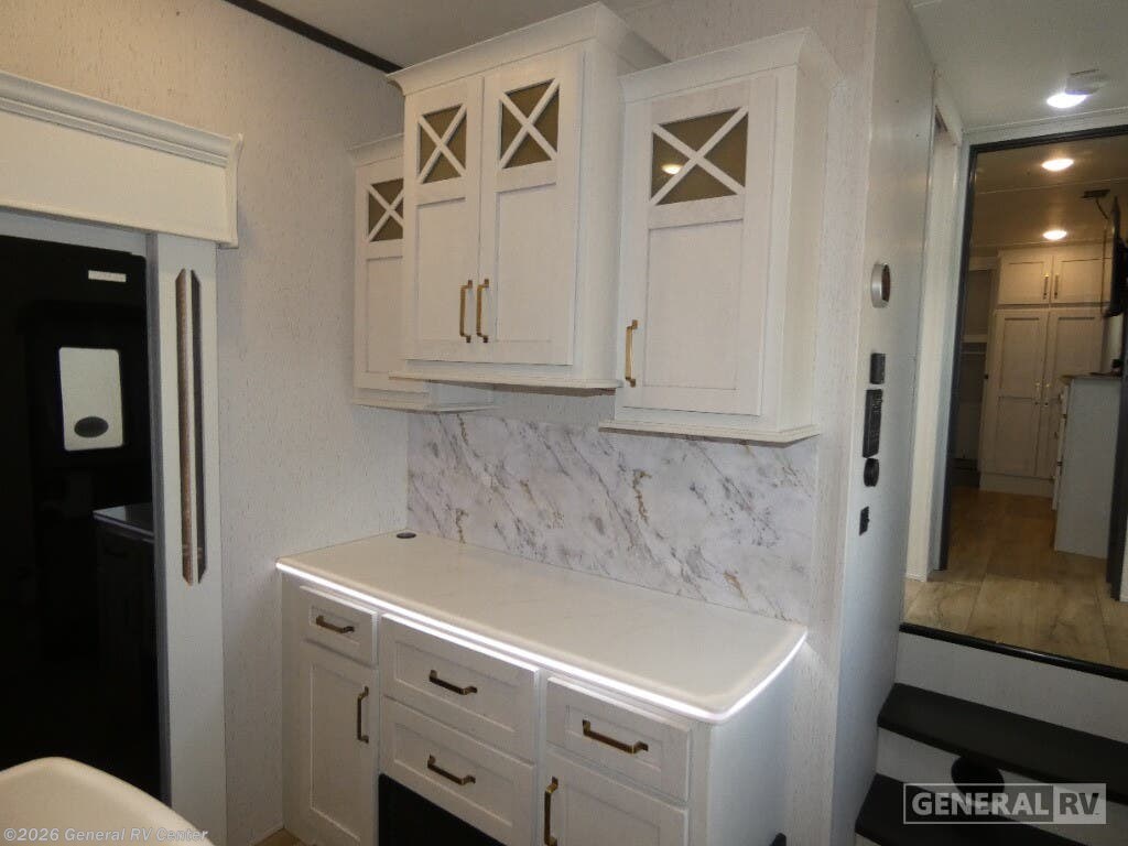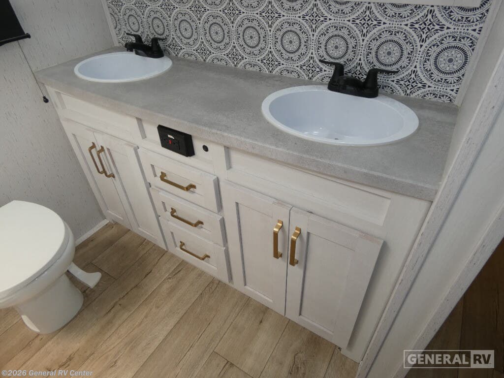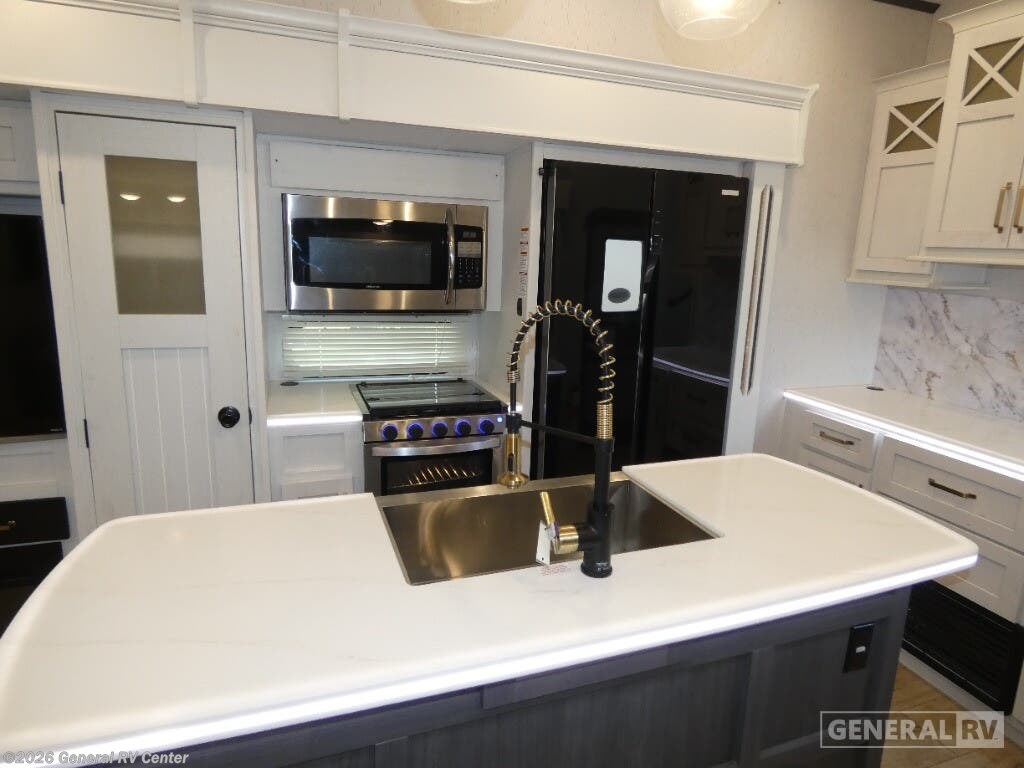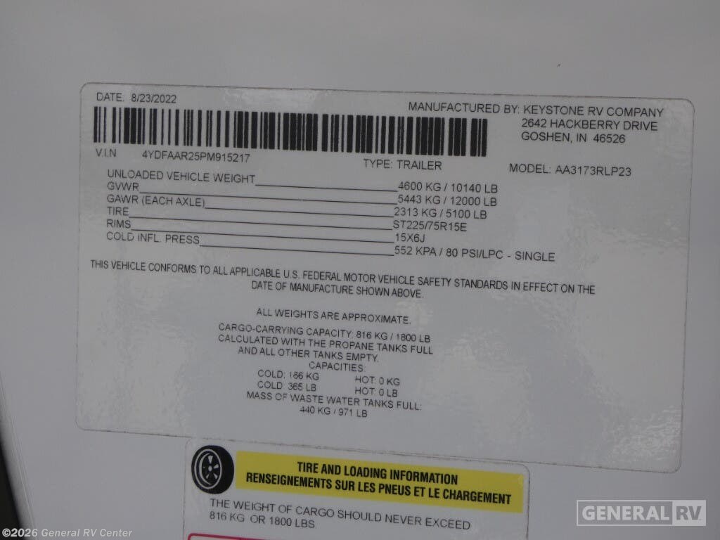 Experience the pinnacle of comfort and style with the 2023 Dutchmen Astoria 3173RLP. This luxurious fifth wheel is designed to elevate your travel adventures with its spacious layout and thoughtful amenities. At nearly 36 feet in length, this RV offers an inviting space for up to six guests, featuring a plush king-sized bed and two convertible sleeping areas. The rear living area is a haven of relaxation, complete with theater seating and a tri-fold sofa, perfect for unwinding after a day of exploration. The ambiance is further enhanced by the cozy fireplace, creating a warm and inviting atmosphere. The center kitchen is a culinary delight, equipped with a full-size electric refrigerator and a three-burner cooktop, making meal preparation a breeze. Enjoy your meals at the free-standing dinette, which offers a comfortable dining experience. The dual awnings extend your living space outdoors, providing shade and comfort for alfresco dining or simply enjoying the view. With ample storage, including a pass-through compartment, and washer/dryer prep, the Astoria 3173RLP ensures you have everything you need for extended adventures. Whether you're embarking on a weekend getaway or a cross-country journey, the Dutchmen Astoria 3173RLP is your perfect travel companion. For more details or to explore this model in person, visit your nearest General RV dealership.