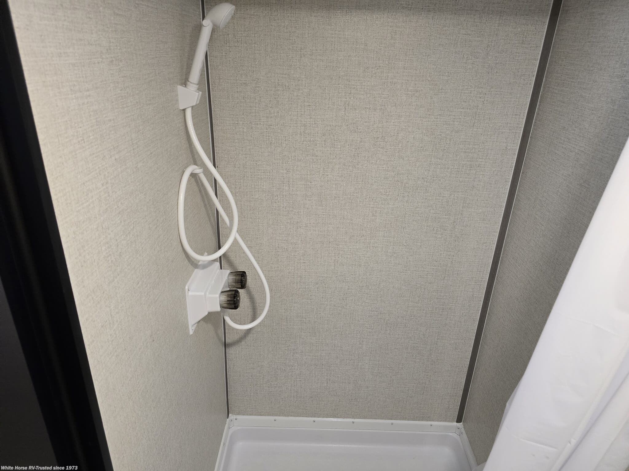 - Convenience built-in: Durable solid entry steps and a compact bathroom with a shower and toilet.