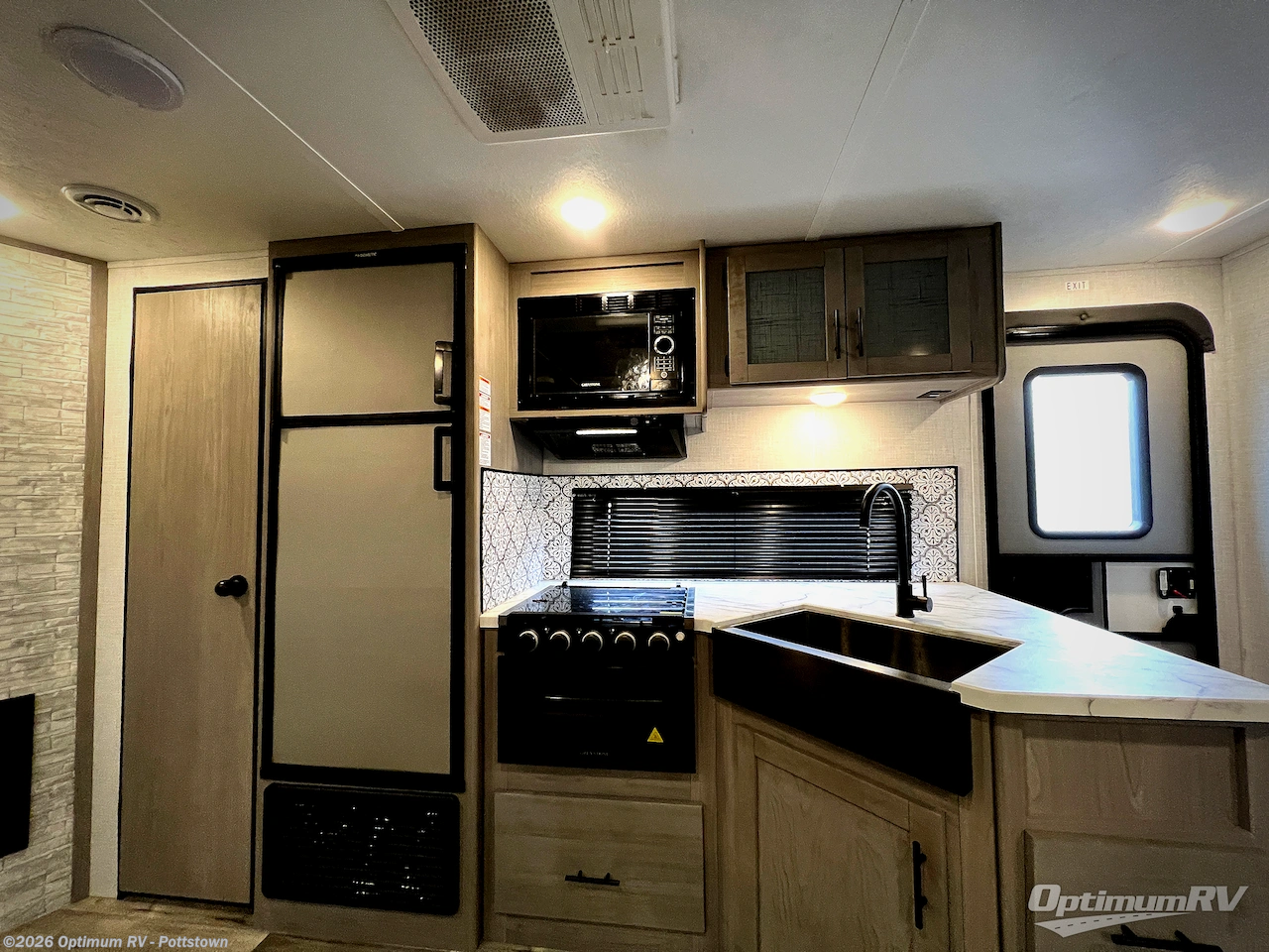 The Dutchmen Coleman Light travel trailer features an upgraded kitchen package with residential appliances, high-rise faucets, and a stainless steel farm-style sink. The fully enclosed underbelly allows all of your trailer's vital functions to be kept out of the freezing cold, and you'll have great stability as you enter your trailer by using the solid entry steps. Each model includes power stabilizer jacks, a power tongue jack, dual 20-LB propane tanks, a residential queen bed, and preparations for Wi-Fi 4G LTE. There is an aerodynamic front fiberglass cap, exterior speakers, solar charging connection, and aluminum wheels.
