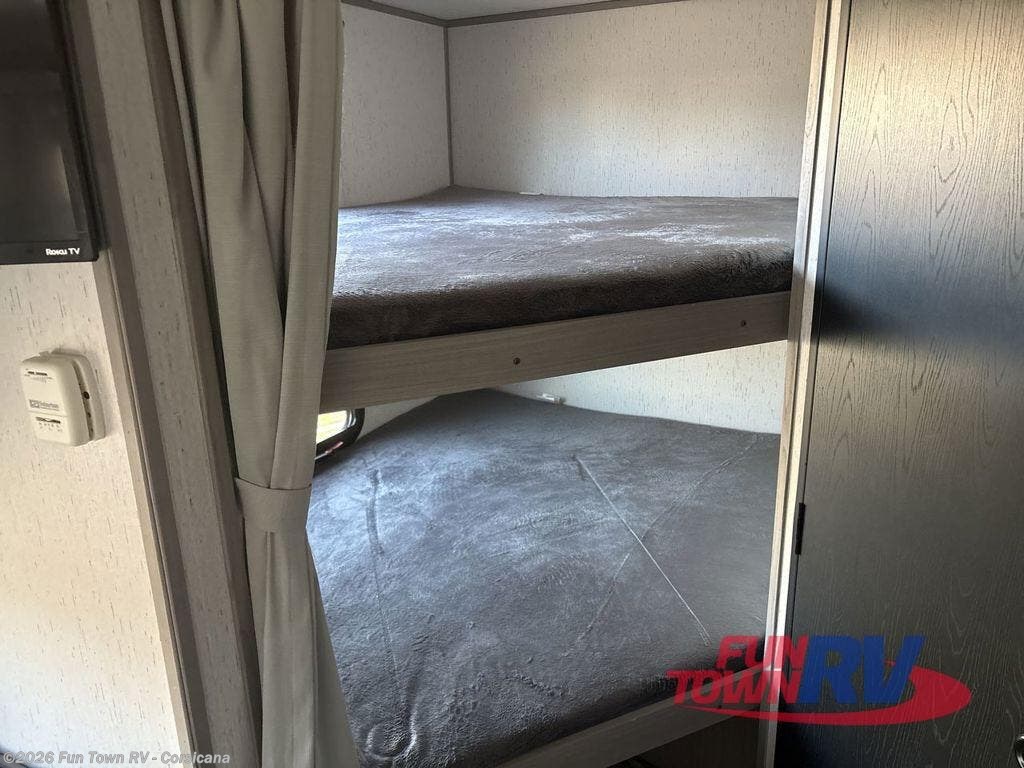 Its time to load up and head to your favorite campgrounds in this family and pet-friendly Kodiak SE travel trailer! You can place your clothing in one of the two wardrobes on each side of the residential walk-around queen bed while the kids place their bags on the bunk they chose for the weekend. You will find more storage throughout the inside, and the exterior pass-through compartment will hold the camp chairs, charcoal and such. The 10-cu. ft. 12V refrigerator can hold the cold items, plus there is storage beside it for your dry goods. Everyone can remain clean with the corner full bathroom, and you can even sleep seven if you utilize the dinette.