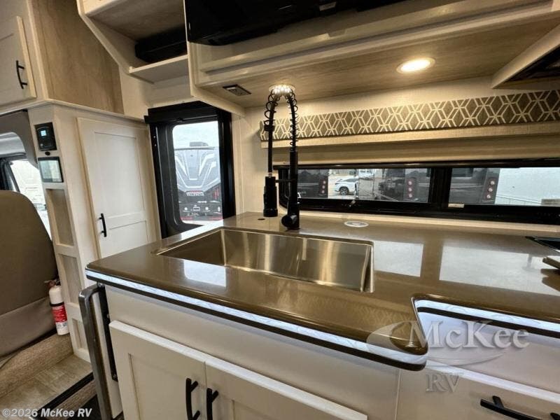 The Europa Super C diesel motorhome by Dynamax is coming to you with all the power, durability, and luxury you need for your adventurous lifestyle. You will love the solid surface countertop with LED edge lighting in the kitchen, the premium vinyl flooring throughout, and the clean, contemporary styling with a Dusk decor. The on-demand water heater is a luxury you won't want to travel without, and the Firefly multiplex wiring with a touch screen command center includes switch panels, and Bluetooth Smart Phone app control for ease of use. There is a single 12V 8D AGM deep-cycle maintenance-free house battery and two 100-watt solar panels to go off-grid if you choose, and the 12,000 lb. trailer hitch will allow you to bring along the off-road toys. Some of the exterior features that make this coach great are the dual-pitch armless patio awning with LED lighting, the automatic four-point hydraulic leveling jacks, and the eye-catching custom full-body paint package!