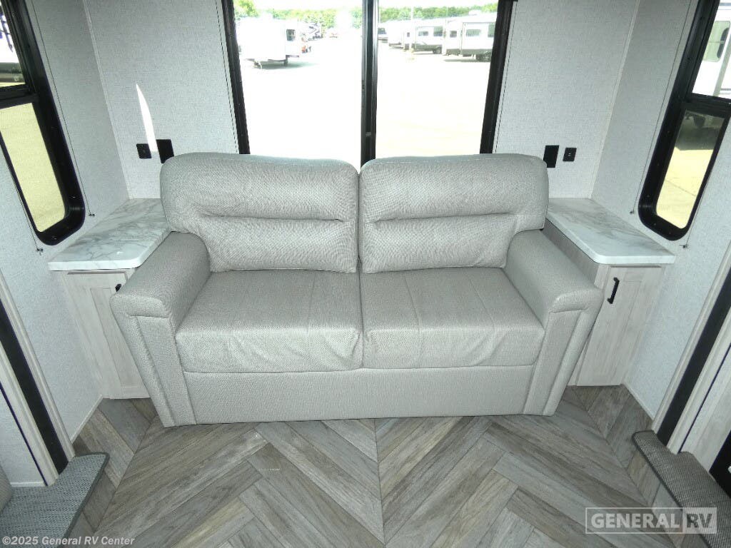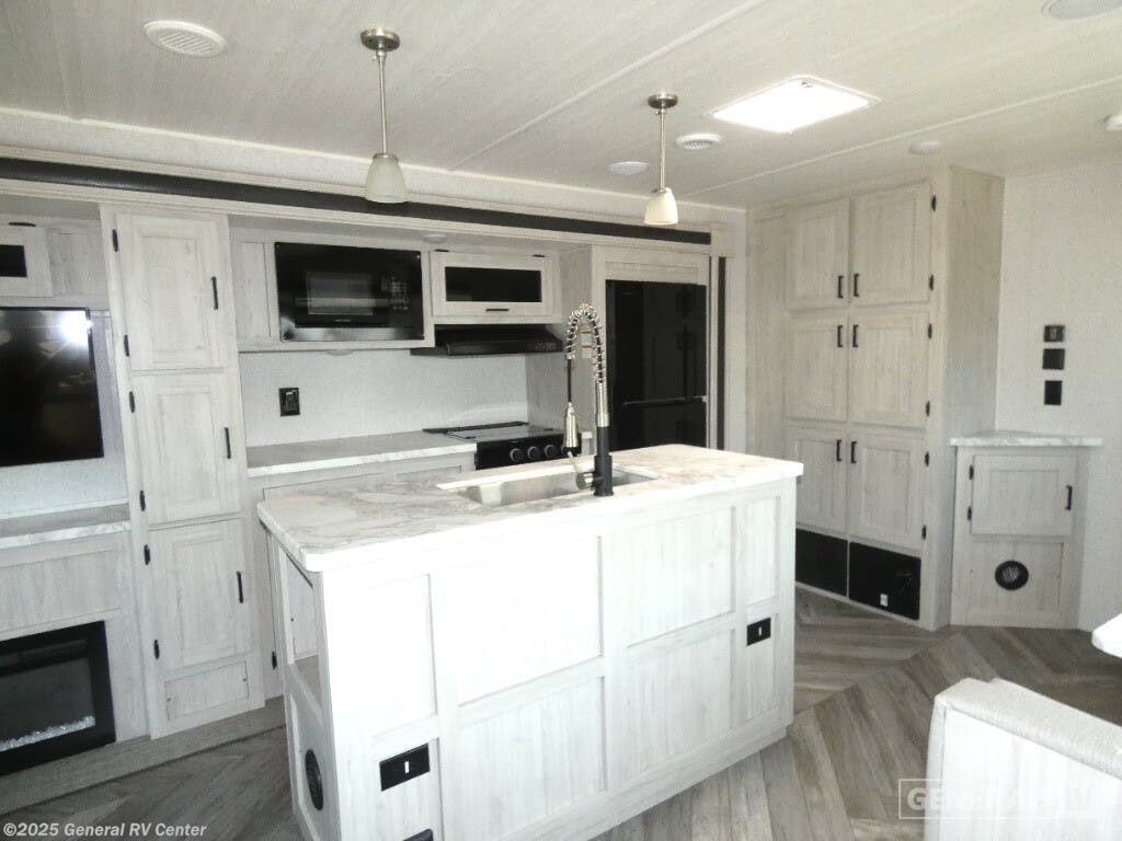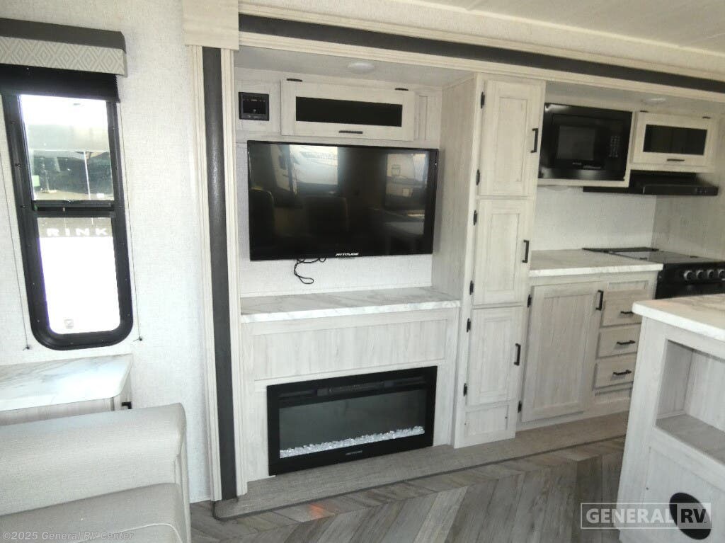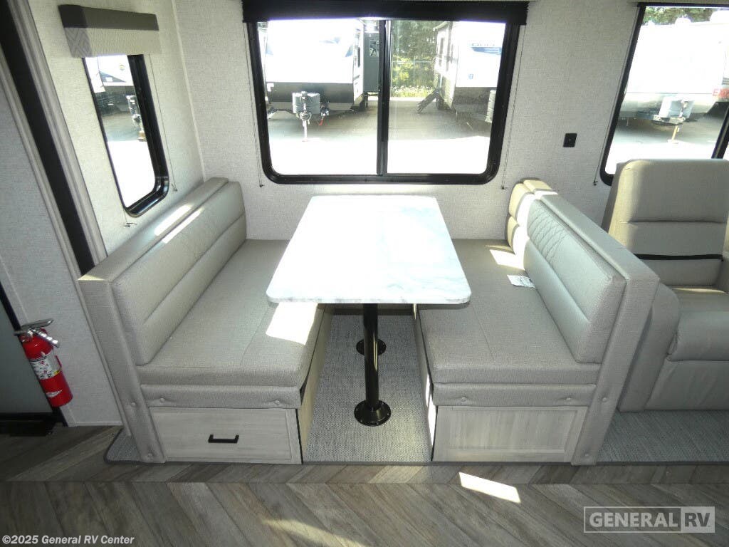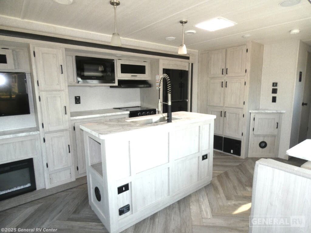 Experience the ultimate in comfort and style with the 2023 EAST TO WEST Della Terra 292MK. This RV is designed for those who crave adventure without sacrificing the comforts of home. With a spacious 36-foot layout, this model features a luxurious rear living area complete with a cozy fireplace, perfect for relaxing evenings. The center kitchen is well-equipped with a three-burner cooktop and a full-size refrigerator, ensuring you can prepare all your favorite meals on the road. The booth dinette and convertible chairs offer flexible seating and sleeping arrangements, easily accommodating up to six guests. The front bedroom is a sanctuary with a king-sized bed and ample wardrobe space, providing a restful retreat after a day of exploration. The center bath, featuring a 30” x 36” shower with a curtain, offers convenience and privacy. Outside, enjoy the 11-foot powered retractable awning, perfect for outdoor gatherings or simply enjoying the view. With generous storage solutions, including pass-through storage and overhead compartments, you'll have plenty of room for all your essentials. The Della Terra 292MK is your ticket to unforgettable adventures. For more information, visit your nearest General RV Dealership.