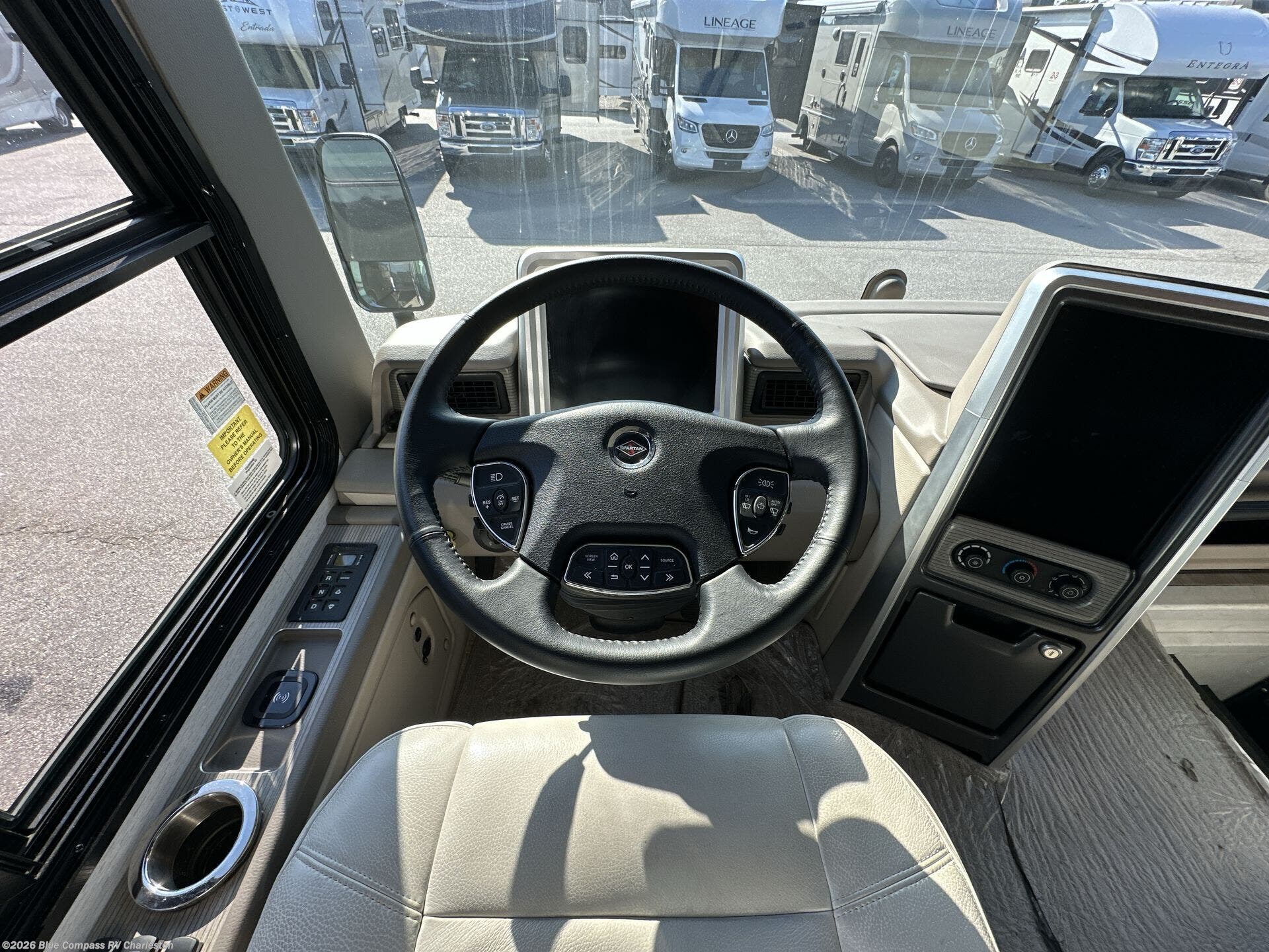 With any Aspire Class A diesel motorhome by Entegra Coach you will enjoy a smooth ride thanks to the Spartan K2 raised-rail chassis, the independent front suspension, and the E-Z Steer adjustable power steering assist. The leather captain's seats include 6-way power adjustment, lumbar and footrest functions that will have you sitting in the lap of luxury, plus there is a Valid infotainment system with a 15" touchscreen and a 360 degree camera system for easy maneuvering. You'll find many high-end features inside, including a Teakwood shower seat in the bath, a decorative ceiling feature, solid surface countertops with dimmable LED accent lighting, and premium Crown Compass furniture. The Aspire also features exterior amenities that will make being on the road easier than ever. The push-button, power-unlatching baggage doors let you unload in record-time, and the Girard awnings will provide tons of shade to relax outdoors. There are also two 190W solar panels, a Winegard WiFi Range Wi-Fi extender, a heated utility center, and much more!