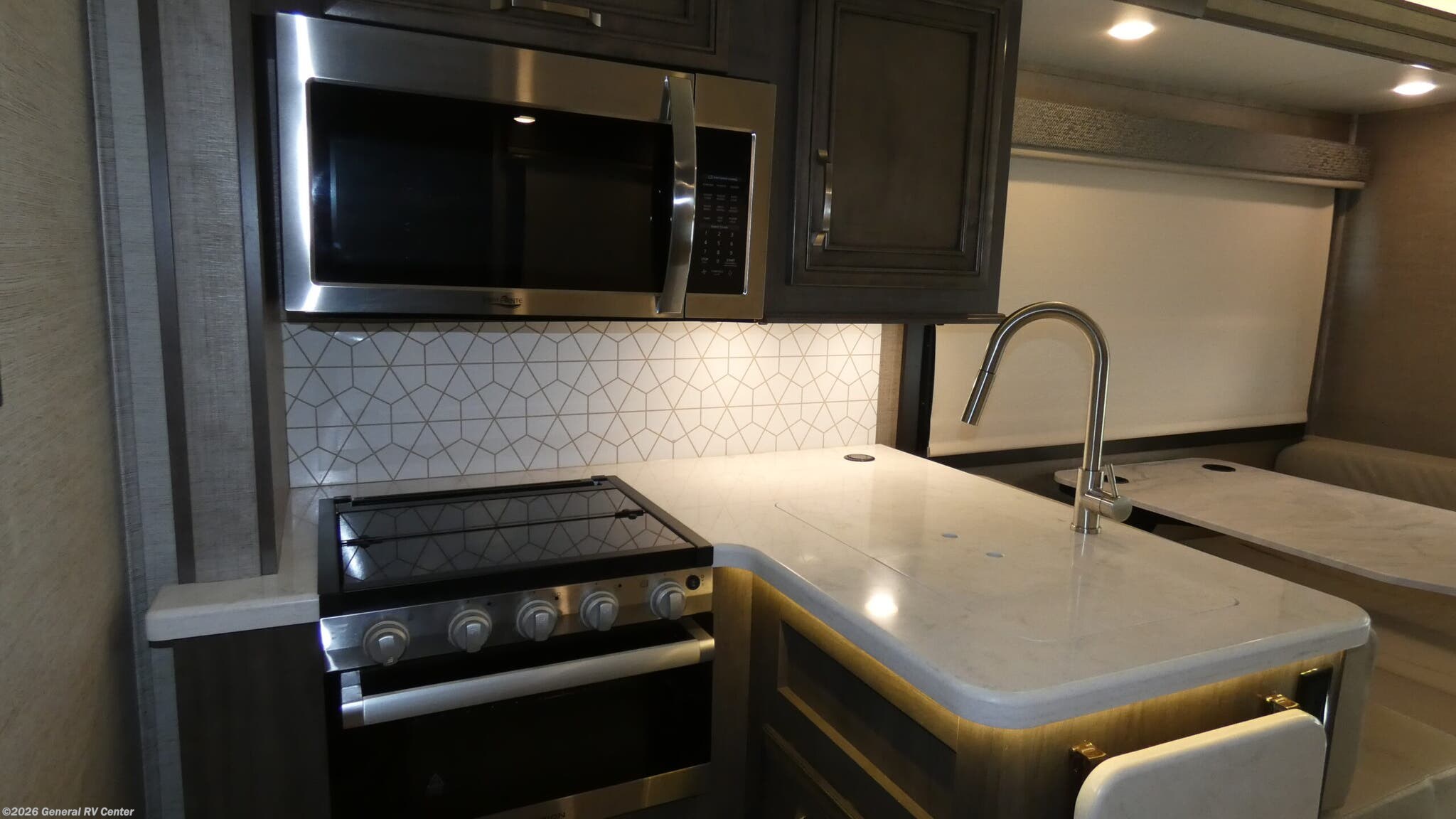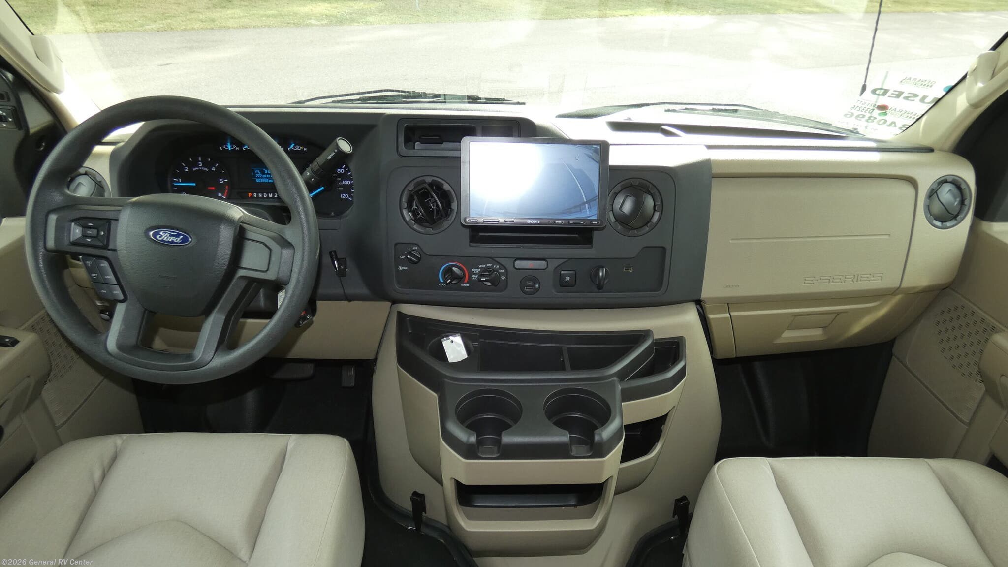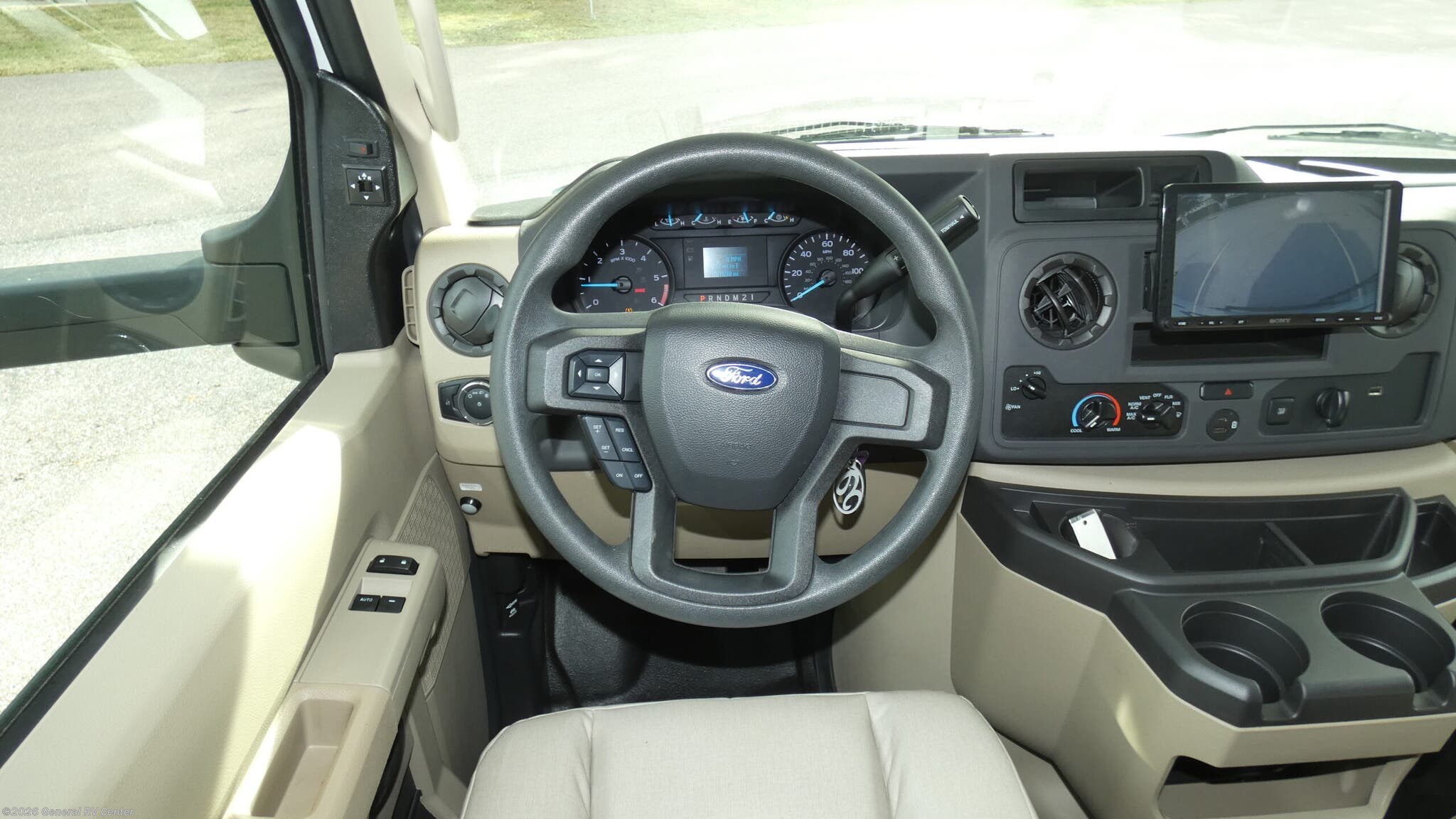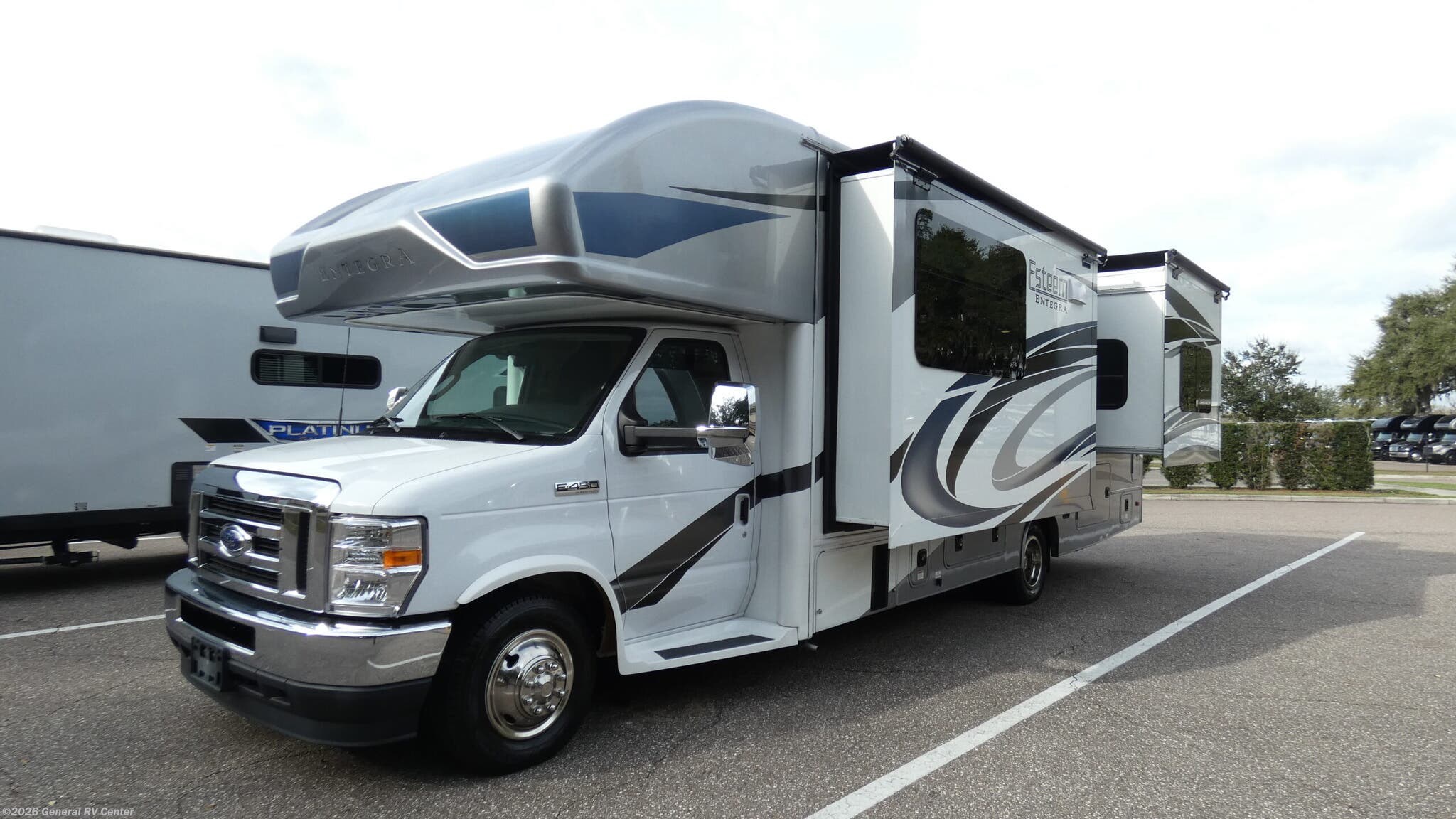 Experience the perfect blend of comfort and adventure with the 2023 Entegra Coach Esteem 27U. This motorhome is designed for families and friends who love to travel in style. With a spacious layout that sleeps up to eight, it features a luxurious king bed in the rear bedroom, a cozy double bed, and two convertible sleeping areas. The Esteem 27U ensures everyone has a comfortable place to rest after a day of exploration. The kitchen is centrally located, equipped with a three-burner cooktop and a mid-size refrigerator, making meal prep a breeze whether you're parked at a campsite or on the road. The Esteem 27U's thoughtful design includes two slides that expand your living space, providing ample room for relaxation and entertainment. The front living area is perfect for gathering, with swivel chairs and a 68" jack-knife sofa. Enjoy the convenience of a rear bath, offering privacy and ease of access. Step outside and unwind under the 18-foot powered retractable awning, complete with an exterior TV for those perfect outdoor movie nights. Built on a robust Ford E450 chassis with a powerful 350 horsepower engine, this RV delivers both reliability and performance. For more details, visit your nearest General RV dealership location.