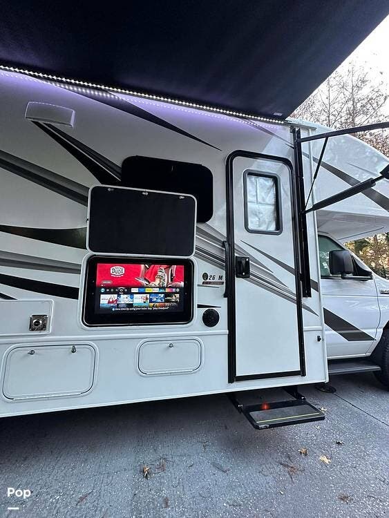 Outside, you'll appreciate thoughtful entertainment and outdoor living amenities -- including an exterior Insigia LED HD Smart TV with two high-output, marine-grade speakers, ideal for watching the big game or streaming movies at the campsite.