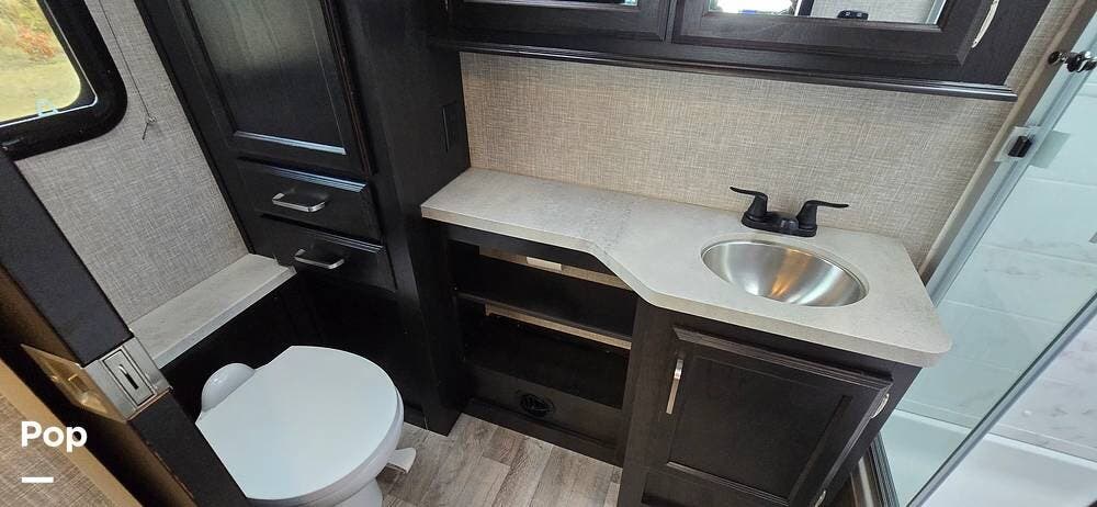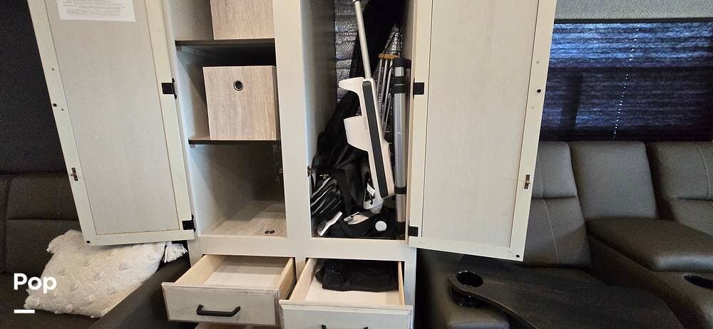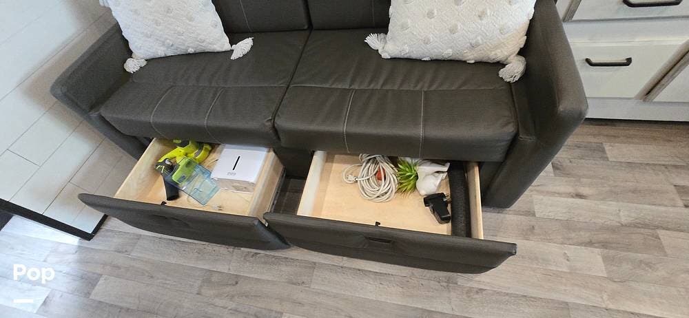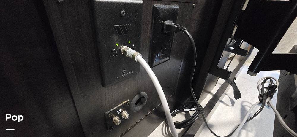 Convenience features such as a Winegard 2.0 Wi-Fi/4G antenna, cable TV hookup, and ample storage cabinetry elevate every journey.