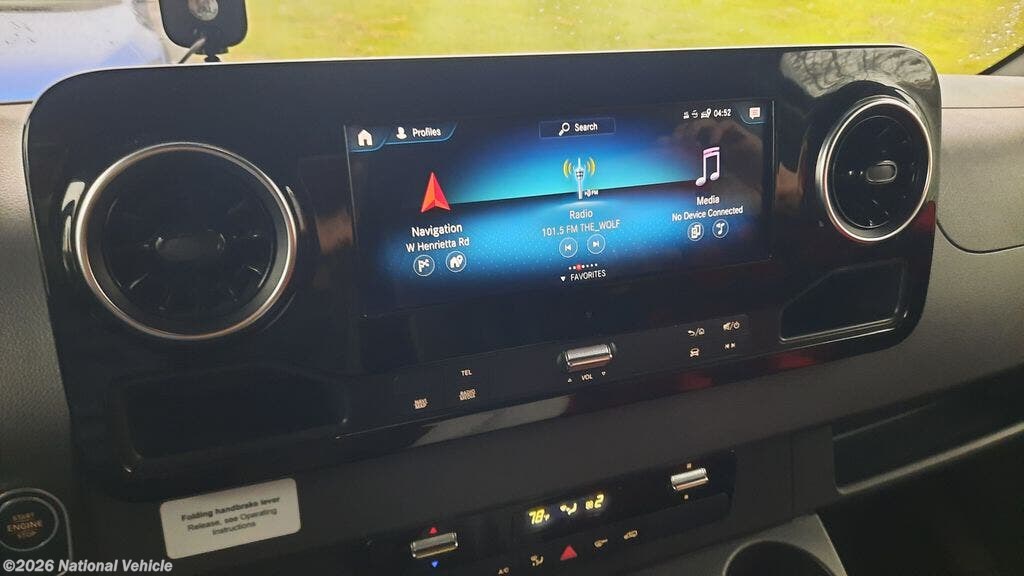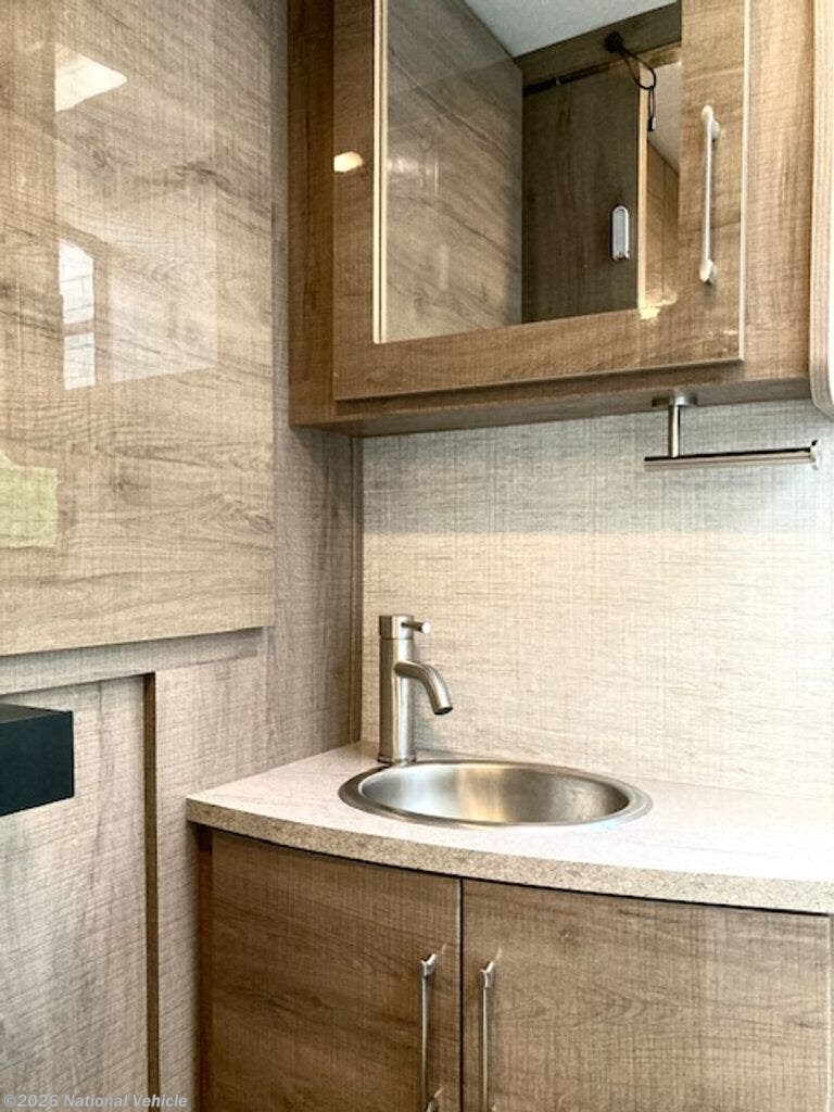 Built on the Mercedes-Benz Sprinter chassis with the 3.0L V6 turbo diesel engine, it produces 188 horsepower and is known for excellent fuel efficiency and smooth handling. The coach also features hydraulic leveling jacks, making campsite setup quick and easy.