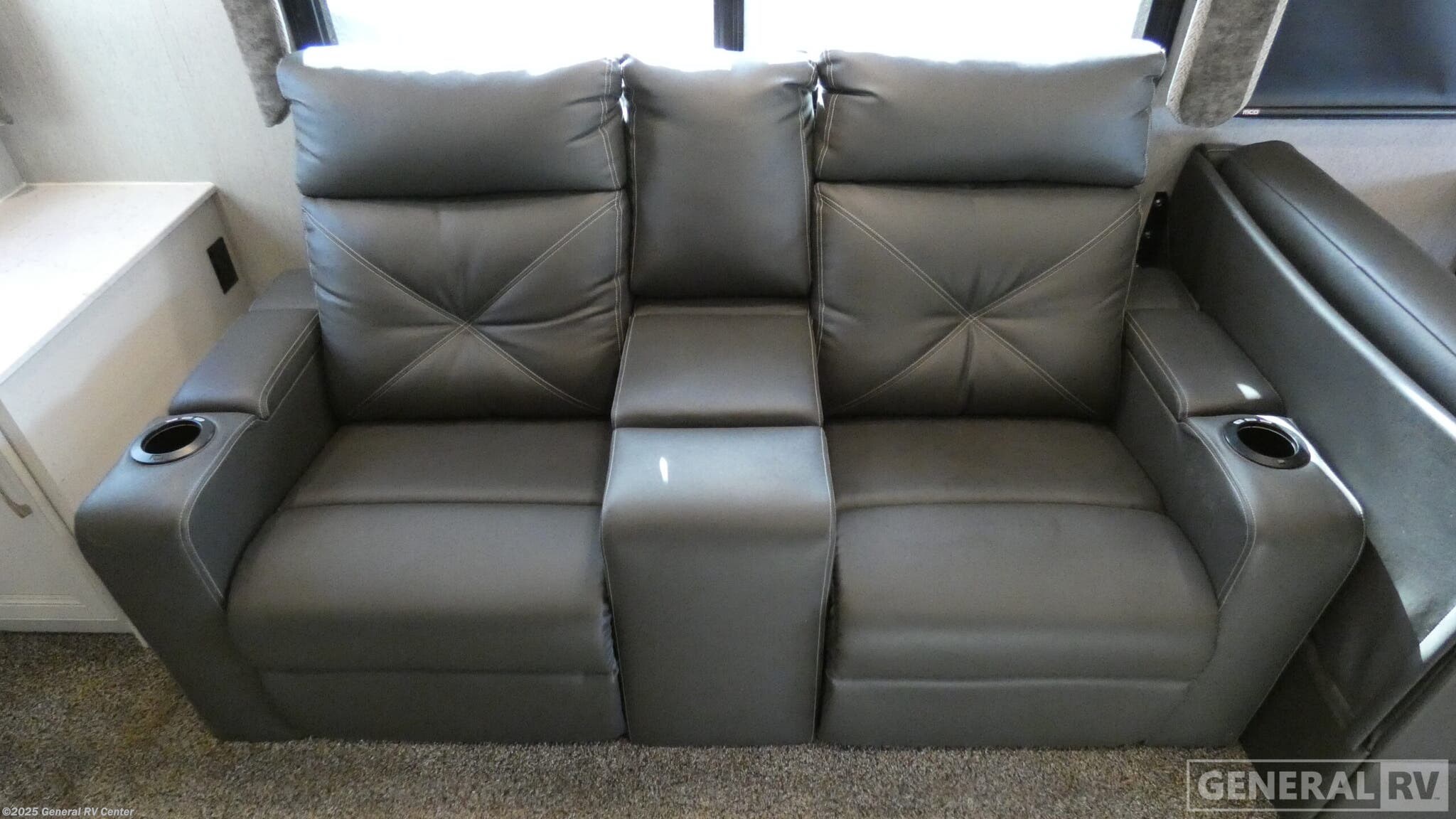 Step into the 2023 Fleetwood Bounder 35K and experience luxury on wheels. This RV is designed to accommodate up to eight guests, ensuring everyone has a place to rest with its queen and king beds, plus two convertible sleeping areas. The thoughtfully arranged floorplan features a front kitchen, center living area, and a rear/center bath, making it perfect for both entertaining and relaxation. The spacious interior is enhanced by two slides, expanding the living space for a more comfortable journey. The center living area is a true highlight, featuring a cozy fireplace and a jackknife sofa, perfectly complemented by the Rest EZ dinette. The residential refrigerator and convection microwave in the kitchen make meal prep a breeze, while the 3-burner cooktop offers versatility for all your culinary adventures. The full-size shower and dual lavatories provide convenience and luxury, making every trip feel like a home away from home. With a robust Ford F53 chassis, 350 horsepower, and an 8,000-pound towing capacity, this RV is not just about comfort—it's about capability. Visit your nearest General RV Dealership to explore this exceptional model in person.